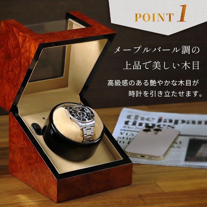IGIMI イギミ 木製ウォッチワインダー メープルバール調 1本巻き 12時センターストップ マブチモーター使用 USB対応 4モード切替 IG-ZERO112B-5 IG05020105009 ワインディングマシン