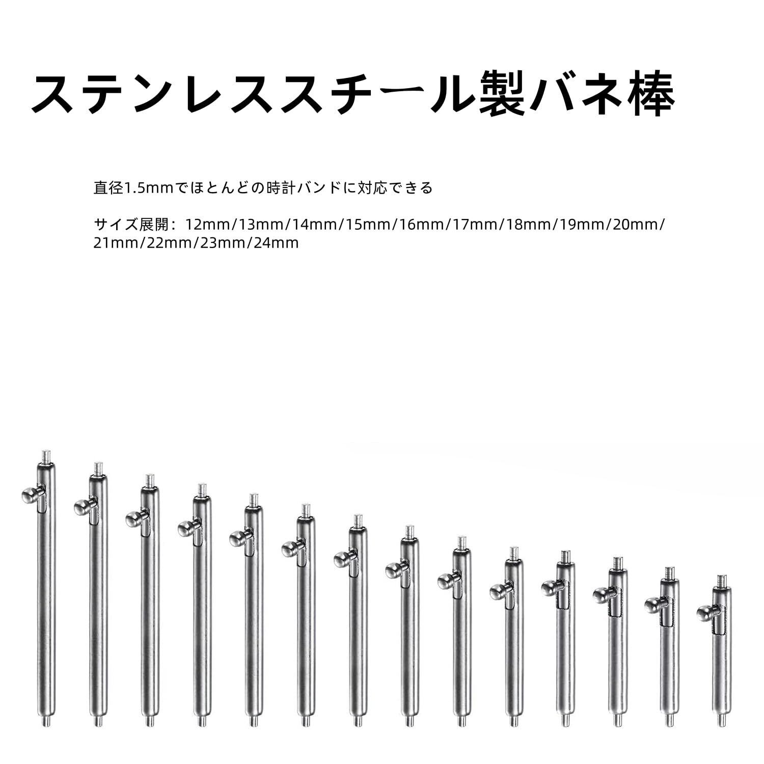サイズ:ラグ幅12mm, 13mm, 14mm, 15mm, 16mm, 17mm, 18mm, 19mm, 20mm, 21mm, 22mm, 23mm, 24mmの腕時計に適用する。ご購入の前にサイズをご確認下さい。