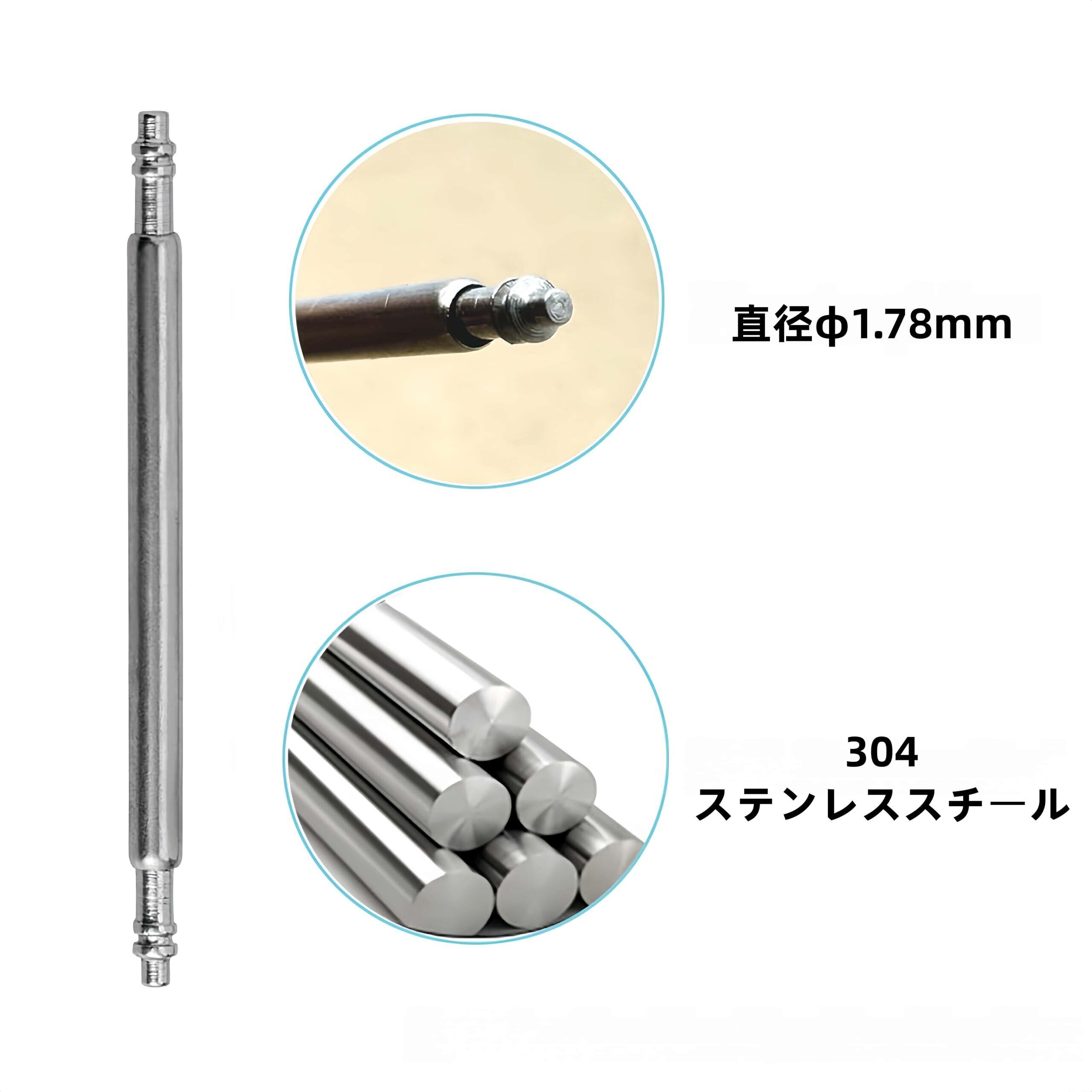 ステンレススチール製時計ベルト汎用バネ棒で、直径は1.78ミリで頑丈で長持ち。腕時計バンドの素材を問わずに、ナイロンベルト、シリコンベルト、レザーベルト、メタルベルトなど適用できます。お時計屋さんに行かずに自分で時計ベルトの修理ができます。バックル側のバネ棒としても使用できます。