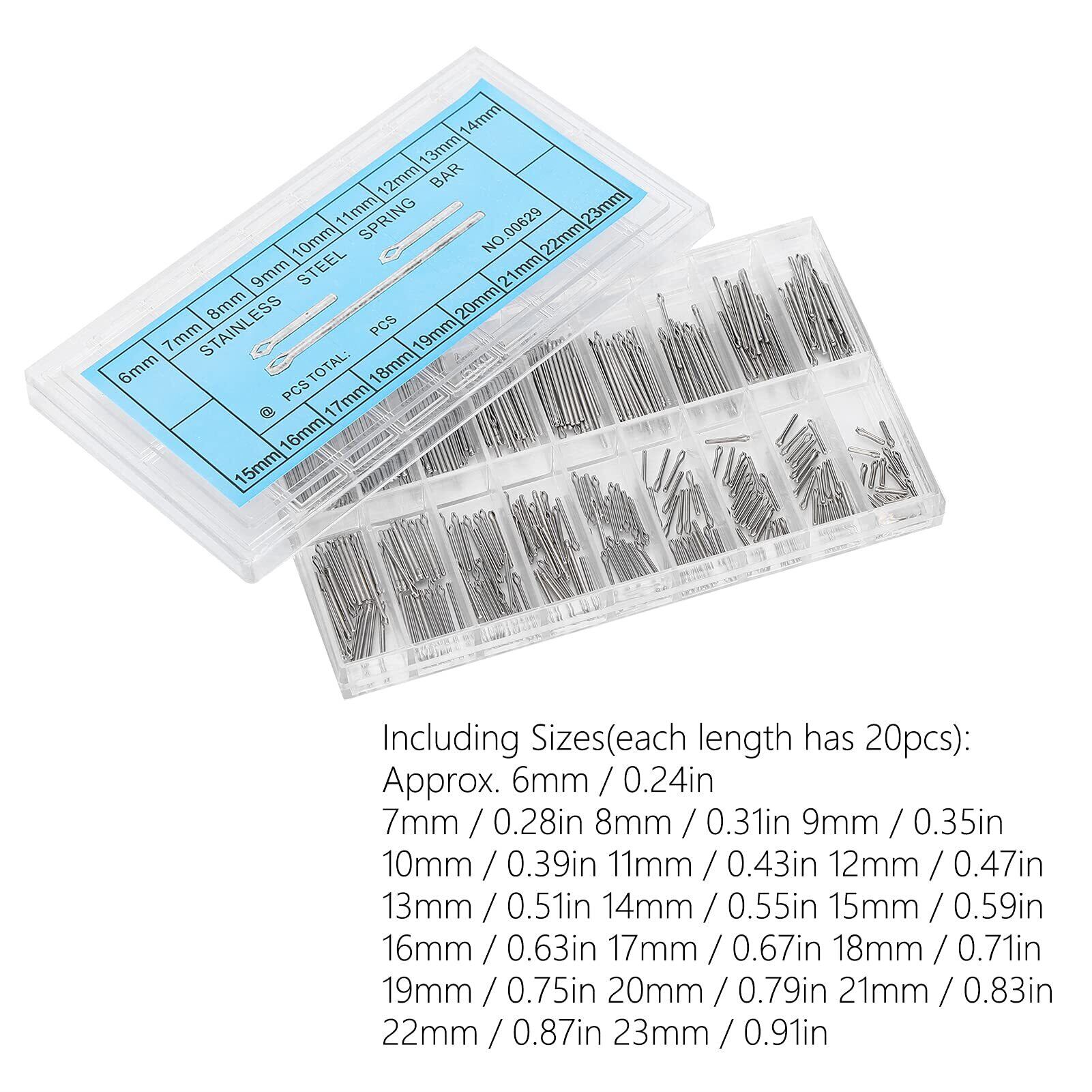 時計の割りピンには18種類のサイズがあり、各サイズには20個が含まれており、さまざまなニーズに対応できます