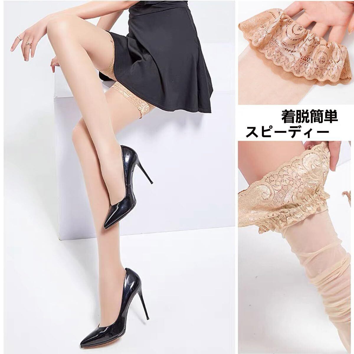 【購入前にチェックしてください】①シリコンゴムはお肌に合わないことがあります。汗ばむ夏にはかぶれが出ることがありますので、直ちに使用を中止してください。②長さ、レース部分は生産ロットにより異なる場合がありますのでご注意ください。③両側の色むらを感じたら、着用時に足を十分に伸ばしながら美しく着用できます。