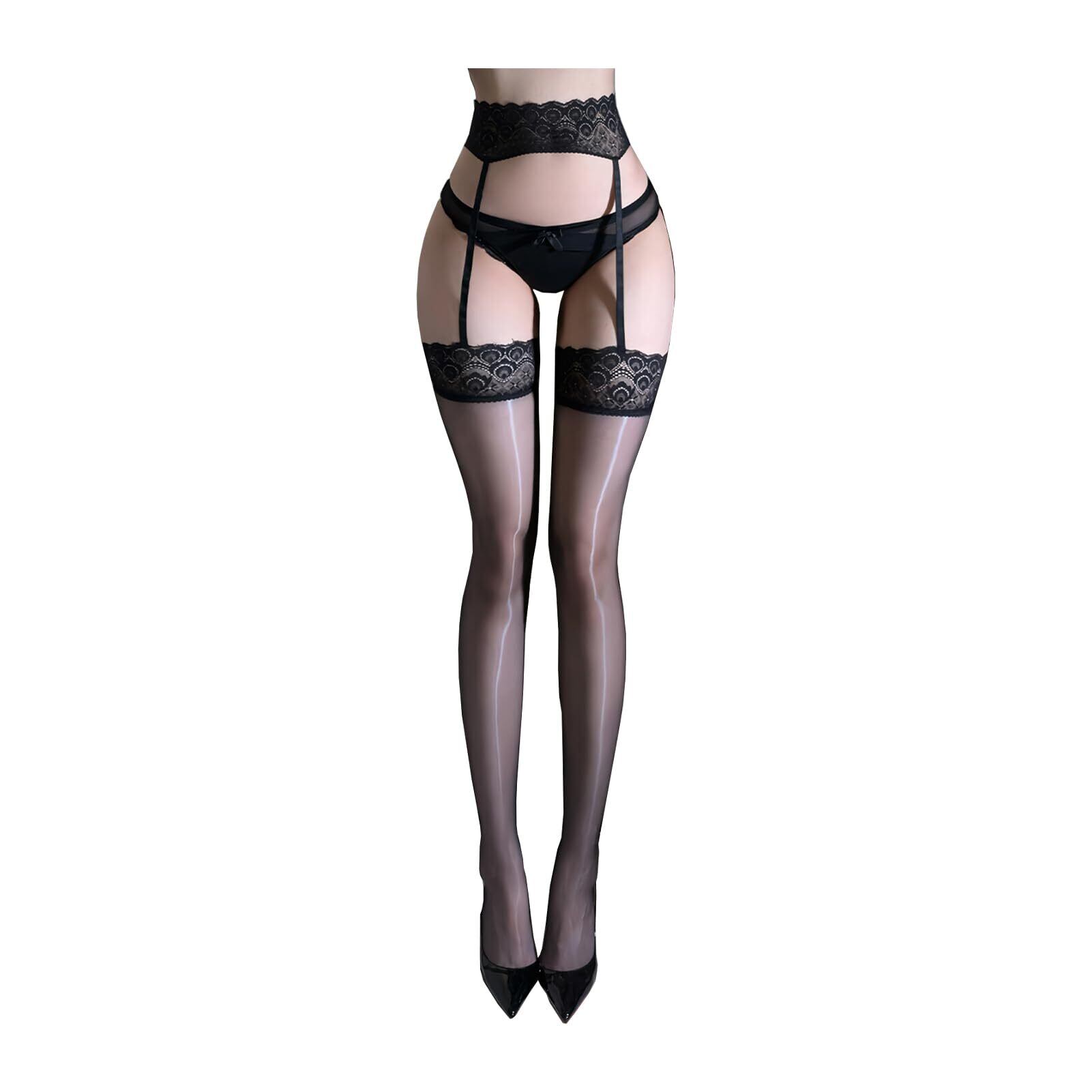 [SongGelon] 美脚シェイプ!ノンスリップガーターベルトタイツ 一体型 脱がずにトイレOK 孔雀柄レースで大人可愛い ストッキング
