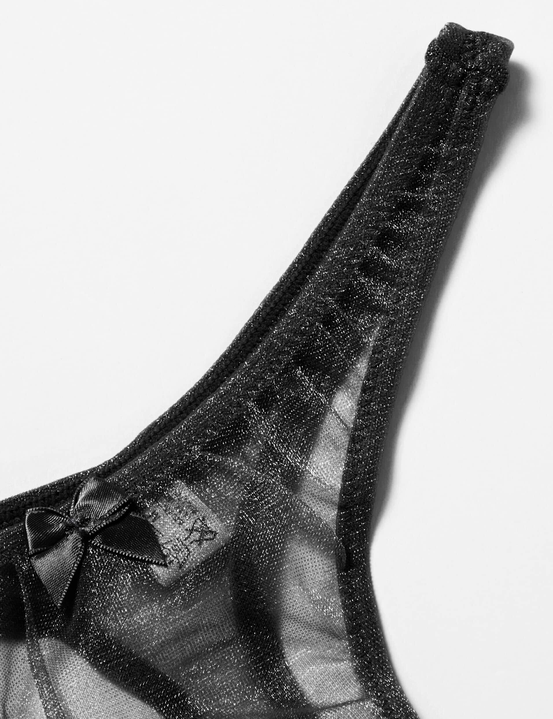 キラキラとした見た目で軽くてふんわりとしたシースルー素材のスパークハーフ生地を使用したTバックビキニになります。