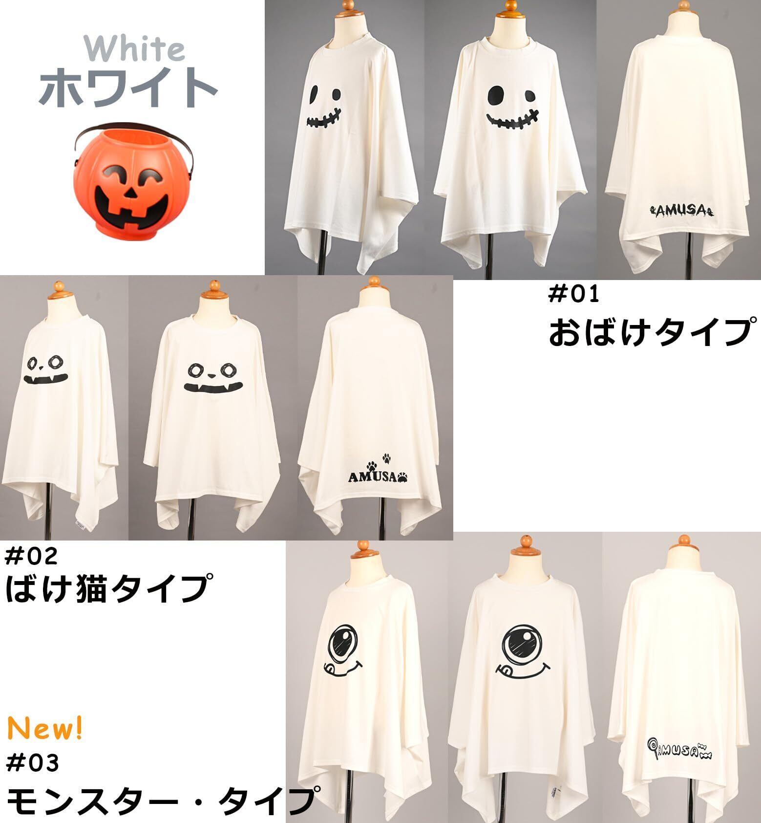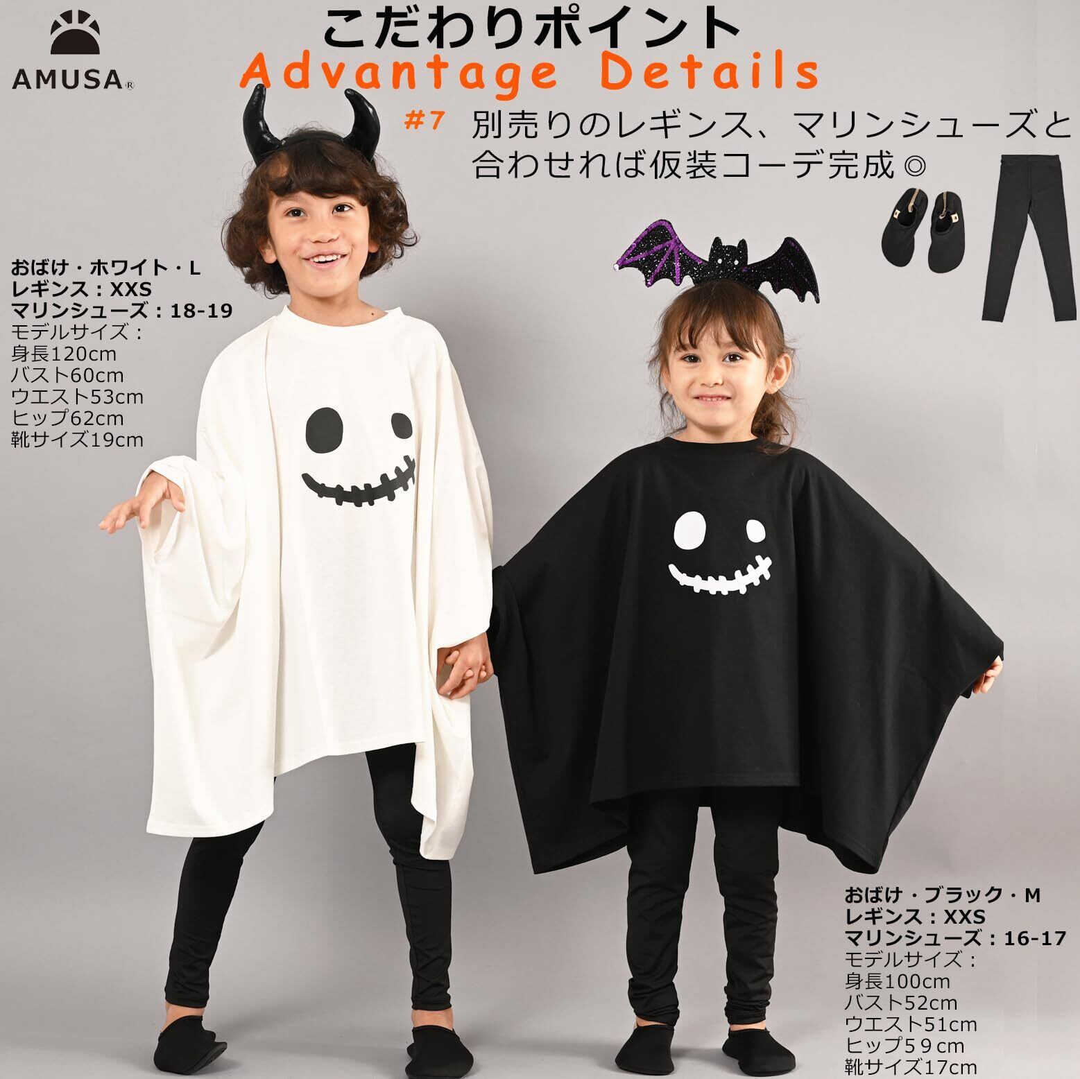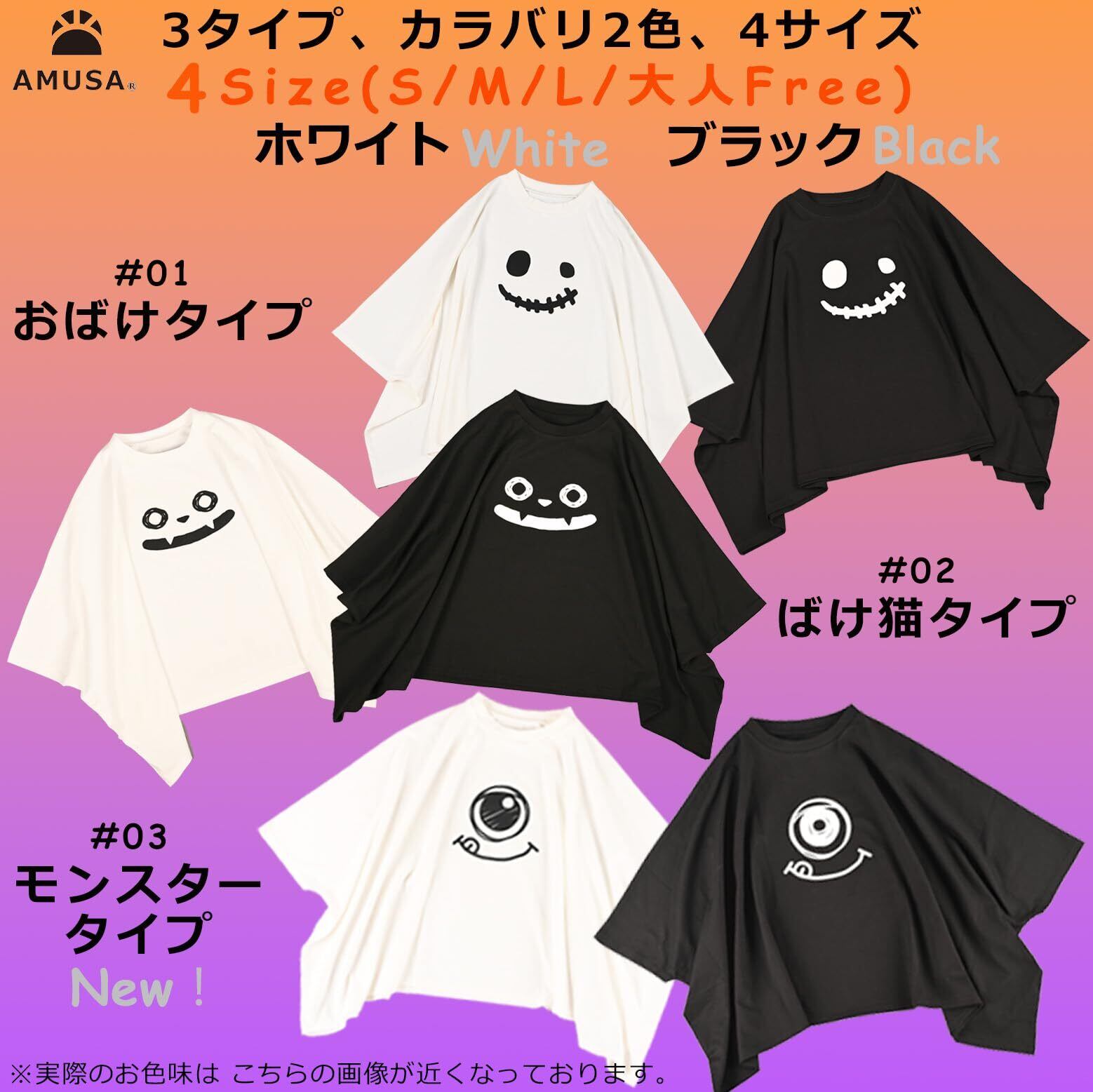 [AMUSA] ハロウィン・おばけTシャツ 男女兼用 ベビー キッズ ジュニア 大人 ブラック ホワイト 仮装 コスチューム パレード パーティーグッズ ゴースト