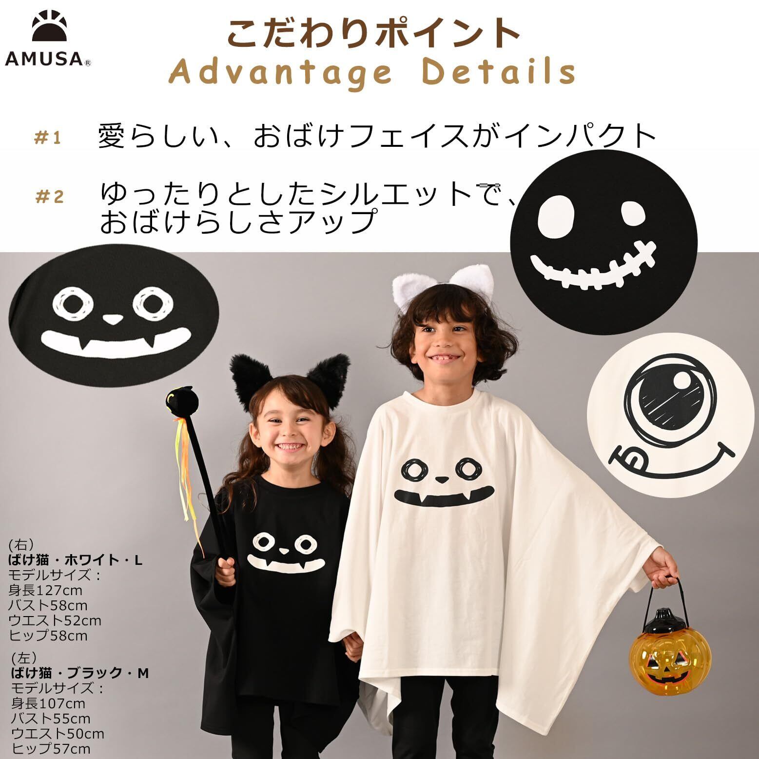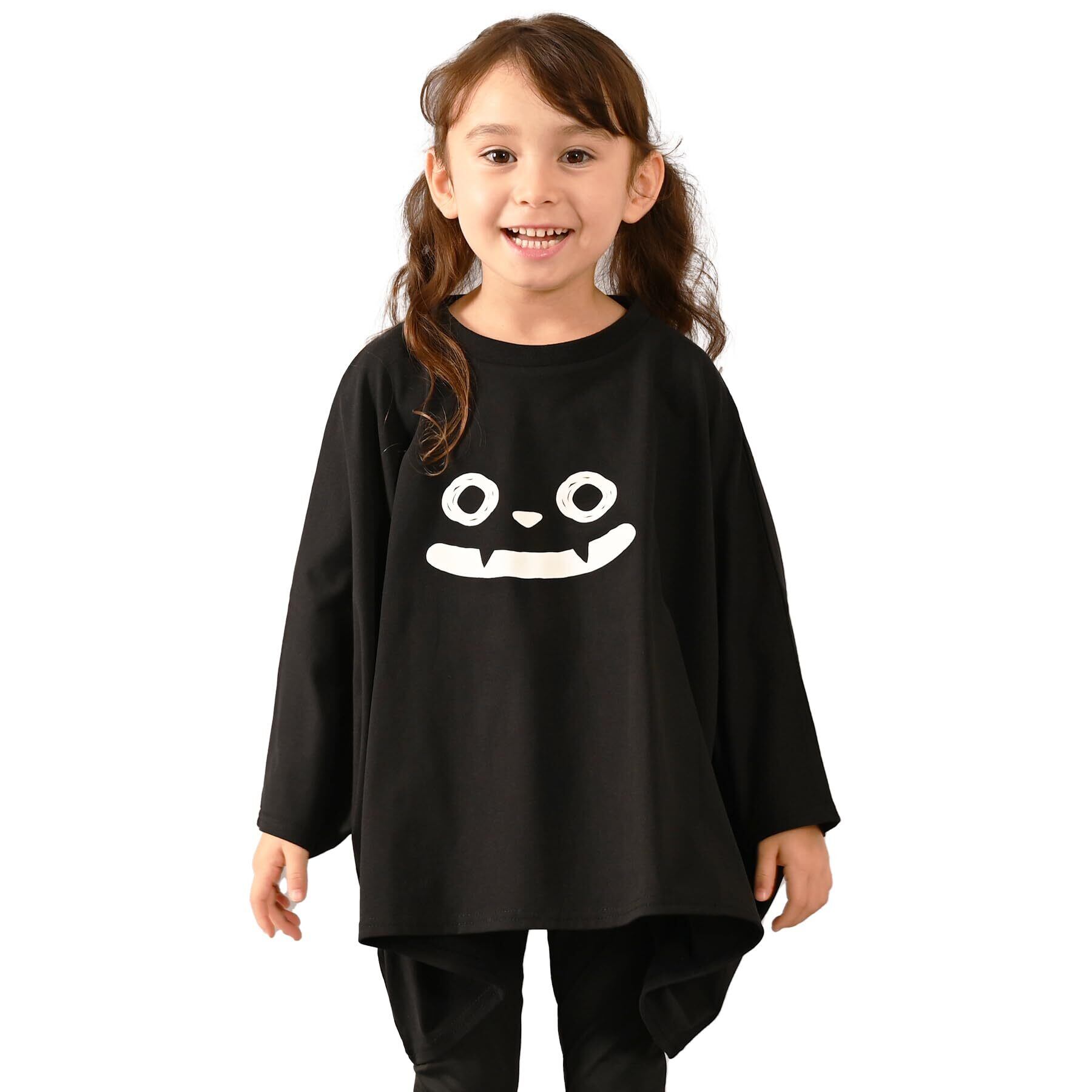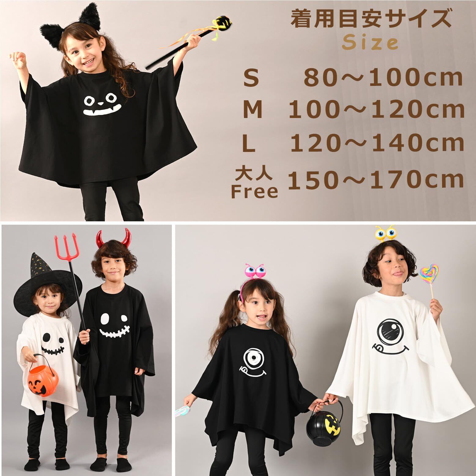 [AMUSA] ハロウィン・おばけTシャツ 男女兼用 ベビー キッズ ジュニア 大人 ブラック ホワイト 仮装 コスチューム パレード パーティーグッズ ゴースト