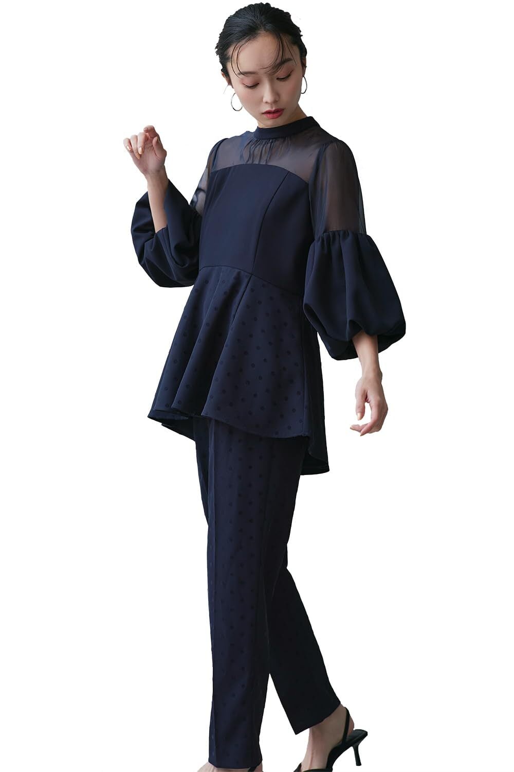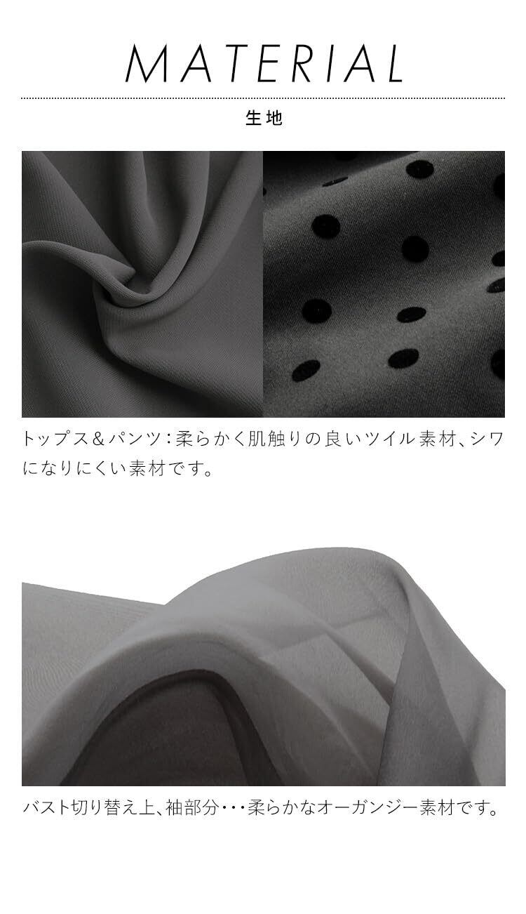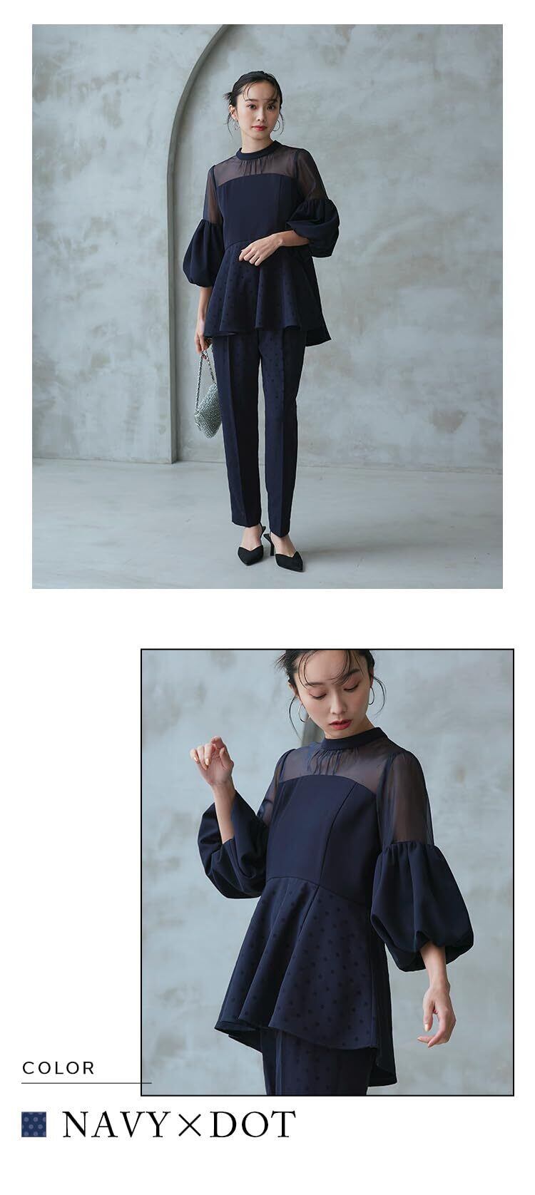[ルイ ルエ ブティック] ボリュームスリーブ ペプラム トップス テーパードパンツ セットアップ レディース ミセス ママ フォーマル パンツスーツ パンツ パンツドレス 長袖 水玉 大きいサイズ 式 セレモニー パーティ パーティー 結婚式