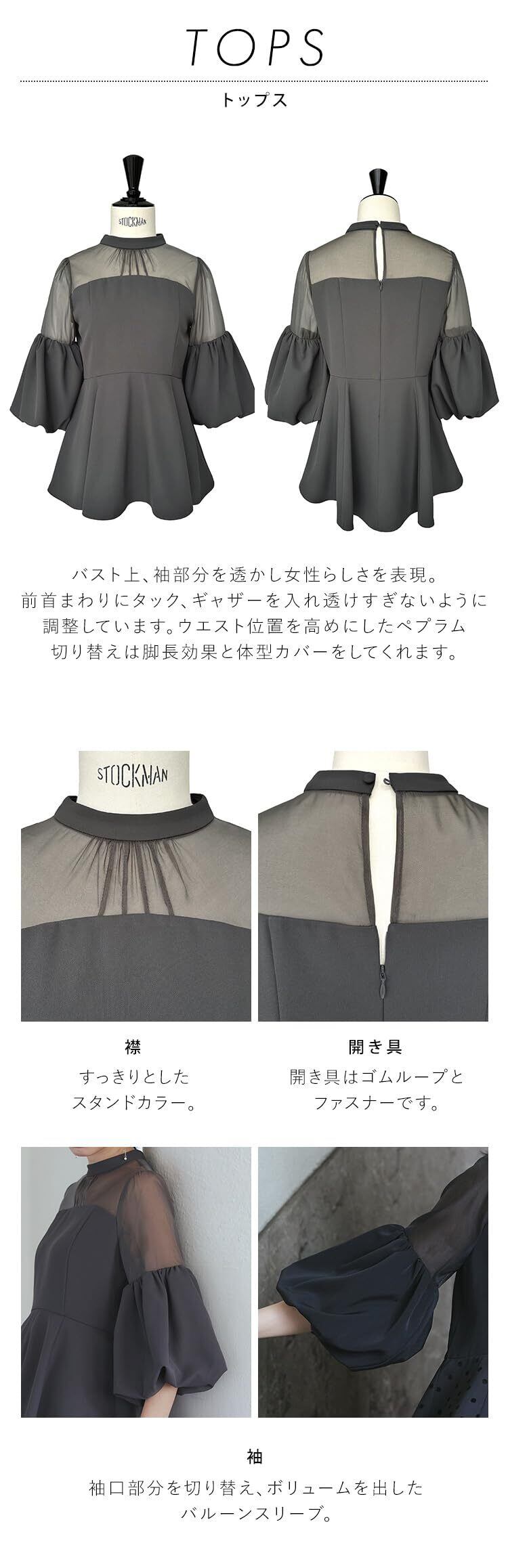 ◆素材◆【トップス】表地・オーガンジー・裏地・ドット:ポリエステル 100%