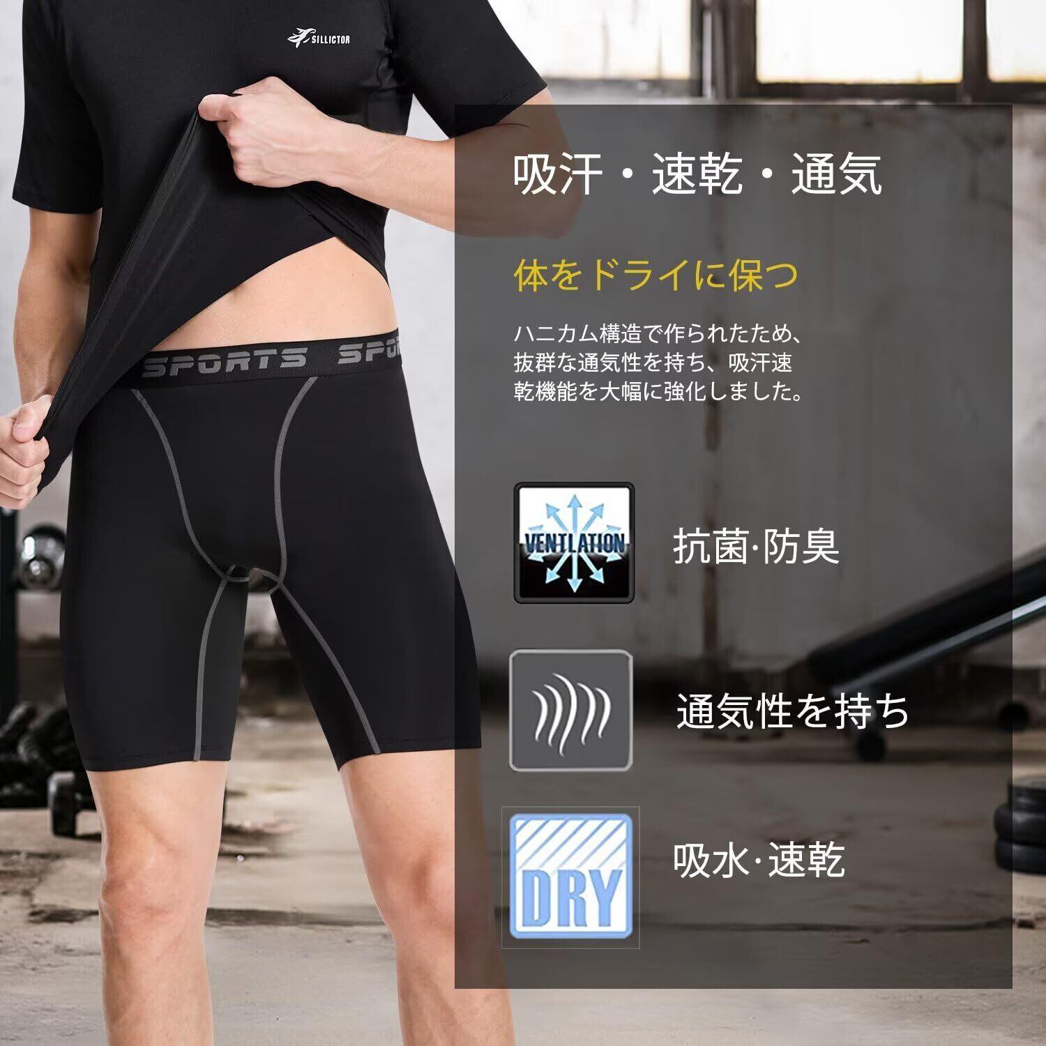 [Sillictor] コンプレッション ショーツ メンズ ショート スポーツ タイツ レギンス スパッツ [UVカット + 吸汗速乾] 1、2、3点セット