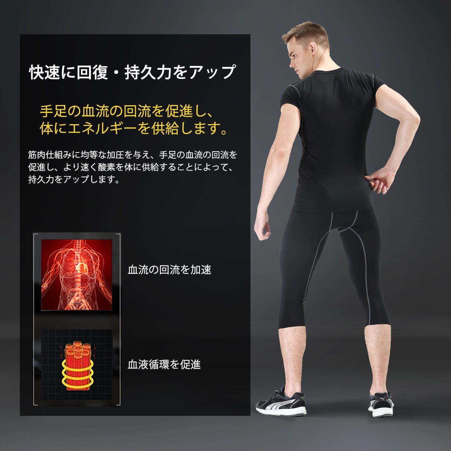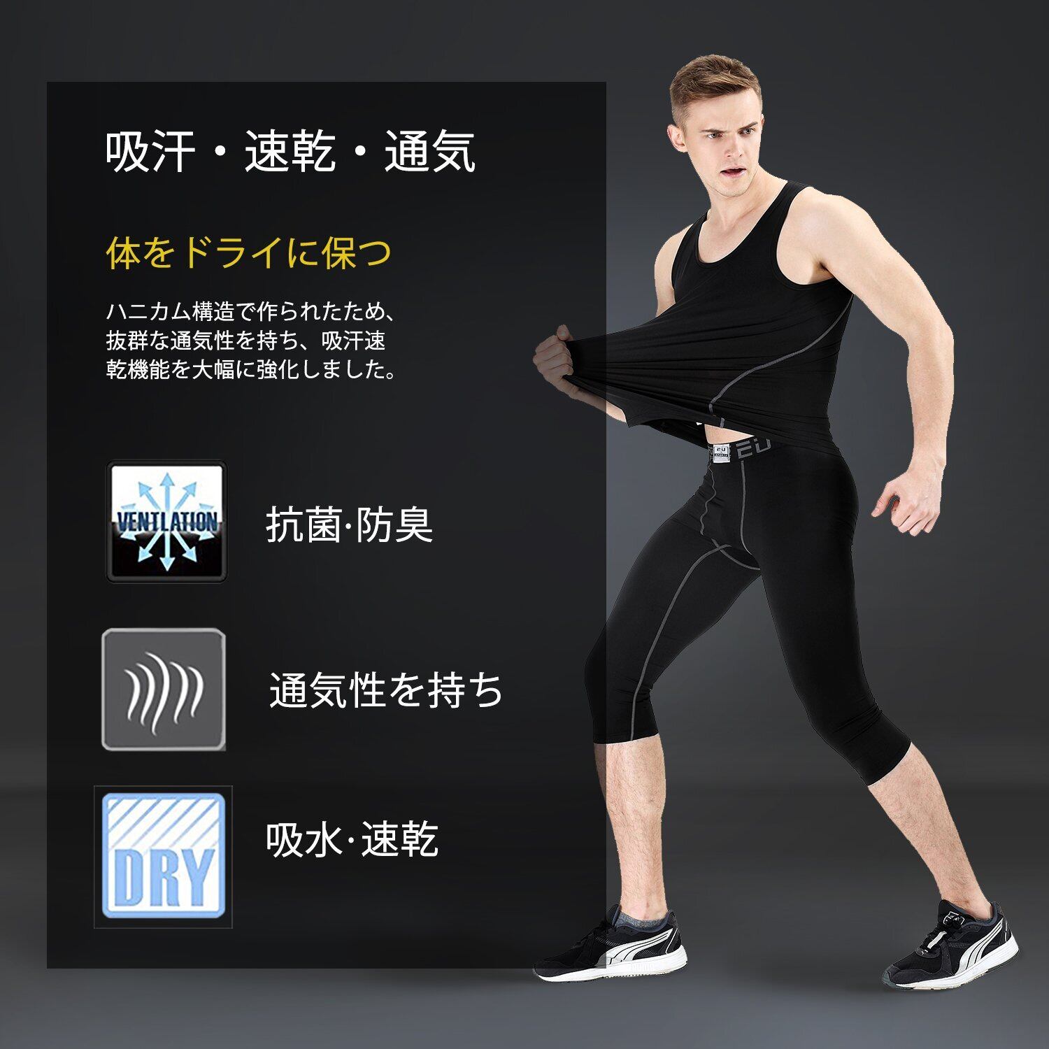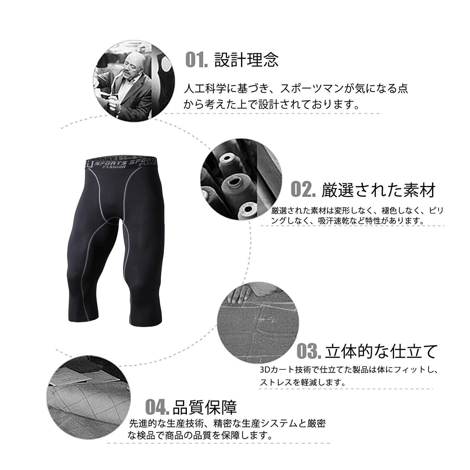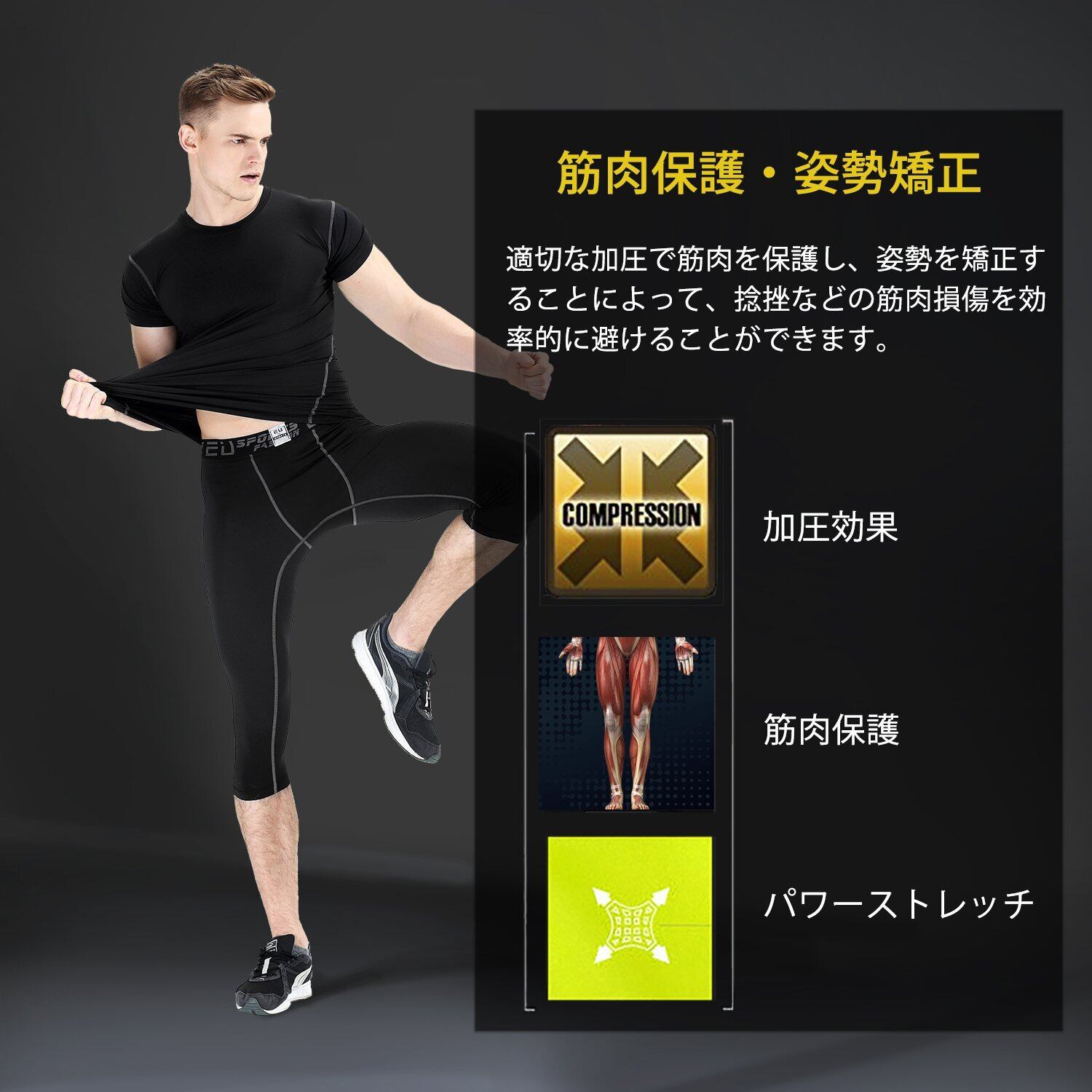 [Sillictor] スポーツ スパッツ メンズ パワーストレッチ 7分丈 アンダーウェア コンプレッション タイツ [UVカット + 吸汗速乾]