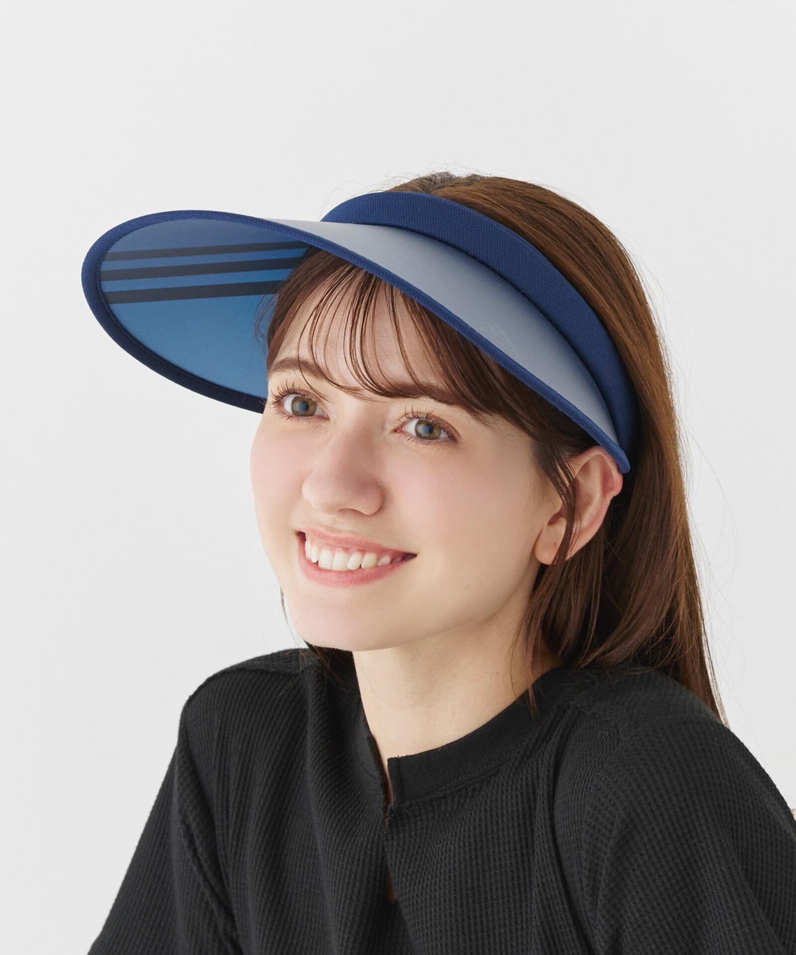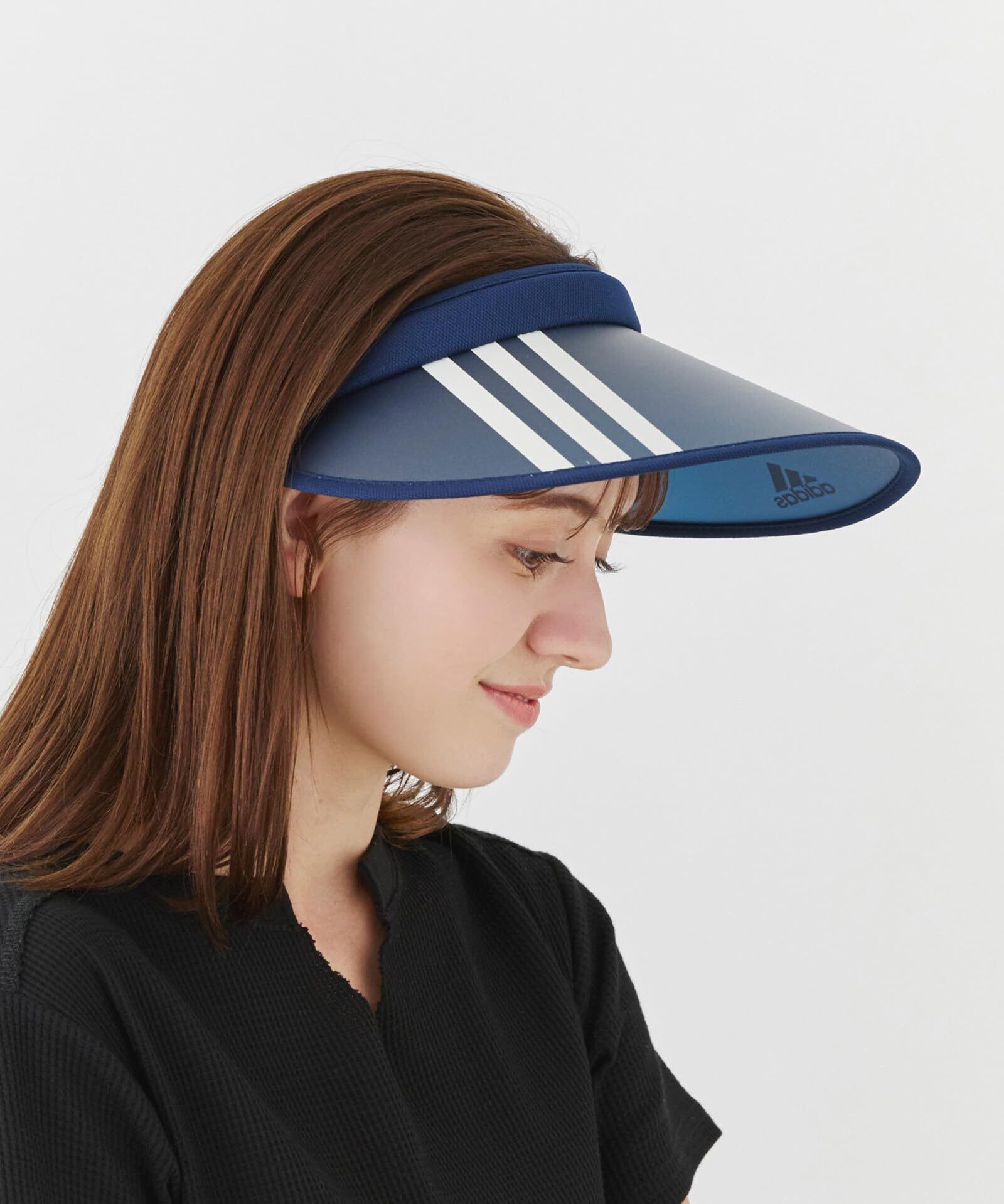 日差しの強い季節に大活躍のクリップバイザー。 大きいバイザー部分がUV 90%CUT、UPF50+と高機能。手洗いもでき、肌にあたるスベリの部分には吸汗速乾の素材を使用しています。 ロゴと3ストライプが入りシンプルですがポイントがきいたアイテムです。