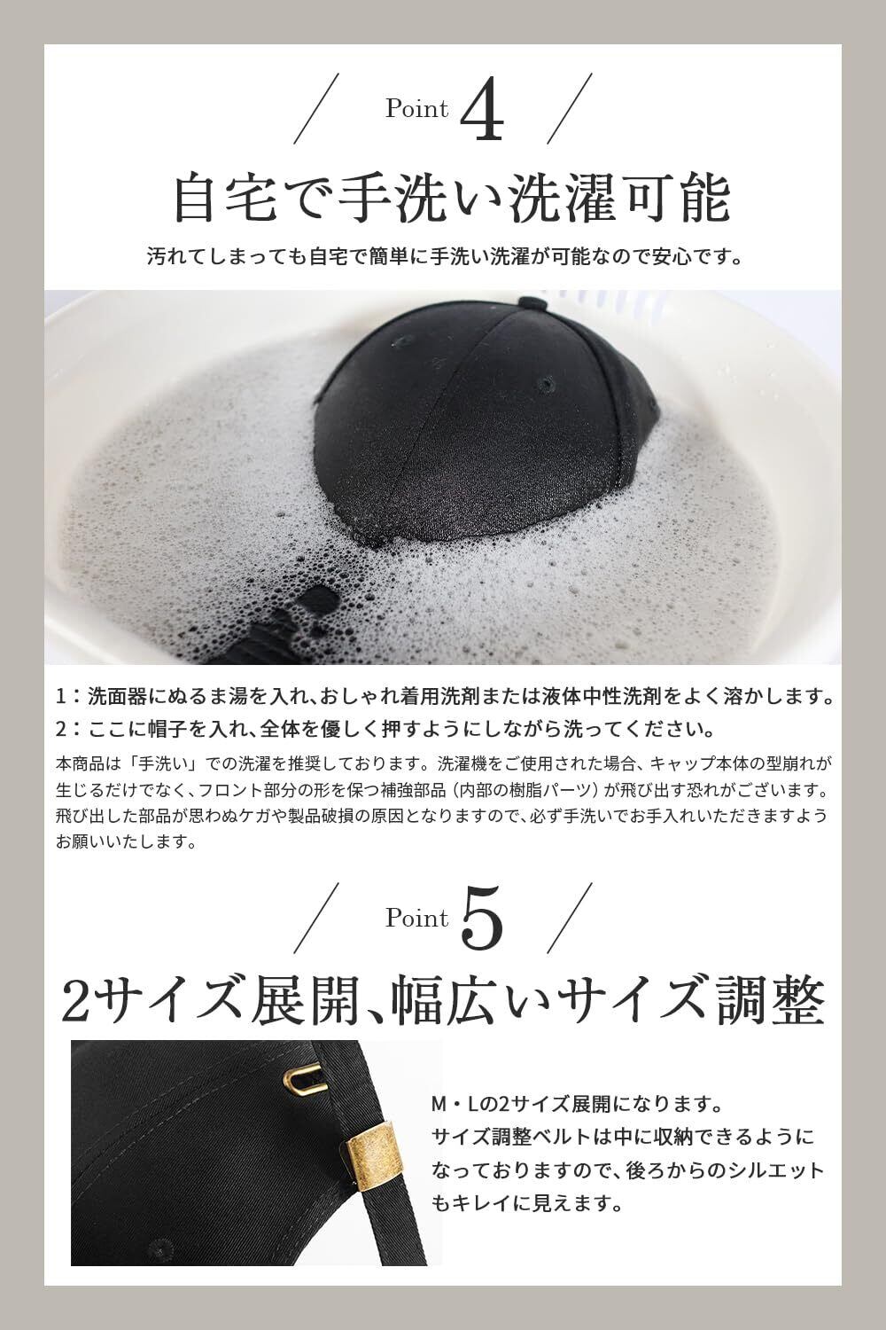 【二重構造で型崩れ防止】従来のキャップとは異なり、前面部分に二重構造を採用しました。この設計により、長時間被っても型崩れしにくく、美しいフォルムを保ちます。使用頻度が高い日常使いでも耐久性を発揮し、いつでもスタイリッシュな見た目をキープ。高品質な仕上がりが魅力の一品です。
