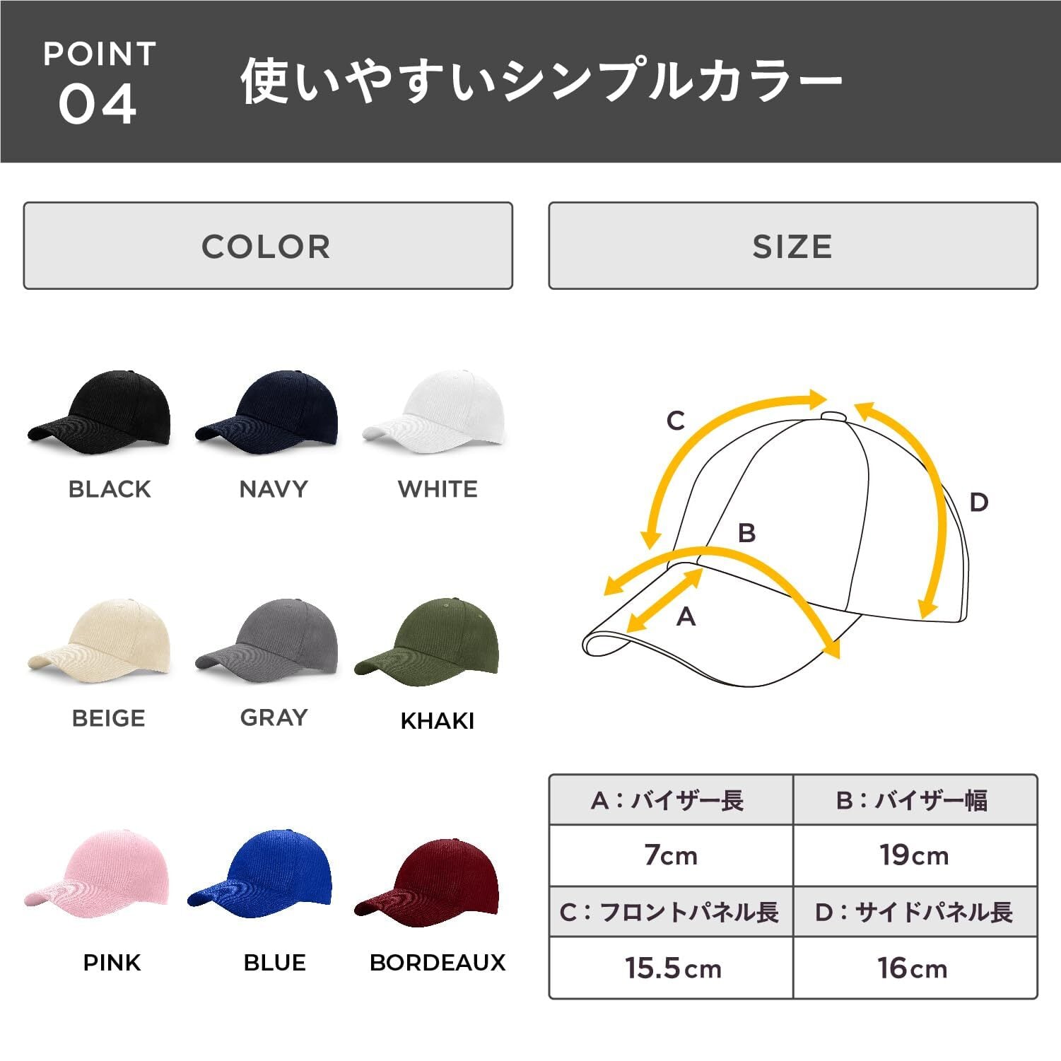 【究極のフィット感】コットン素材のベースボールキャップは快適なかぶり心地とフィット感にこだわりました。日本人の頭の形状に合わせて、キャップのフロントやサイドの長さを調整し、最適な深さと幅を追求。帽子のクラウン部分に着目し、あなたにぴったり合う形状を実現しました。