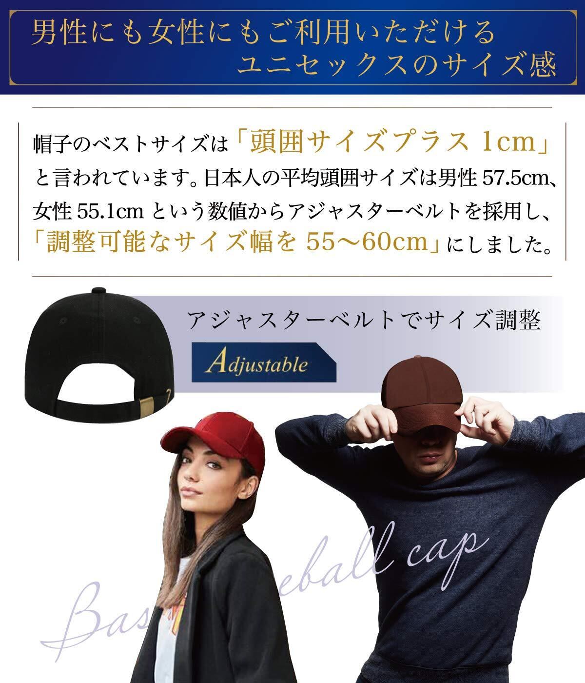 【 アジャスタブルなフリーサイズ 】帽子のベストサイズは「頭囲プラス1センチ」と言われています。日本人の平均頭囲サイズ、男性57.5㎝、女性55.1㎝という統計データに基づき、調節可能なサイズを55~60cmにしました。調節範囲内であれば無段階でご自身にピッタリのお好きなサイズに調整してご使用いただけます。メンズ・レディースのいずれにも対応できるユニセックスのサイズ感です。