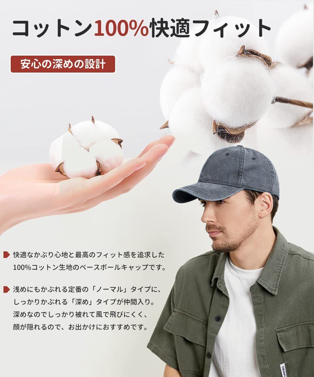 【柔らか素材】快適なかぶり心地と最高のフィット感を追求した100%コットン生地のベースボールキャップです。かぶり心地を頭の上のソフトキャップの部分に着目し、最良の幅と深さを考え抜きまして、頭の圧力を減らすように設計されている帽子。生地は柔らかくて、手触りがいいです。キャップに使用している上質なコットン素材は、通気性にも優れており快適な着用感が続きます。