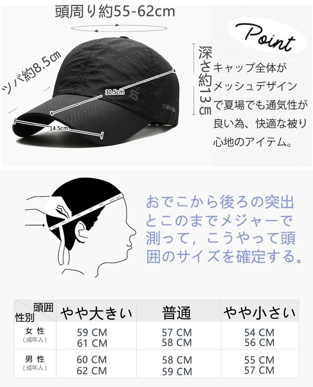 【通気性】キャップはメッシュ素材で、蒸れる心配なし、吸い上げられた汗をすばやく外気へ発散させて、通気性が抜群。着用中は帽子内の空気をよく通し、湿度の高い日本の夏の日除けに最適です!