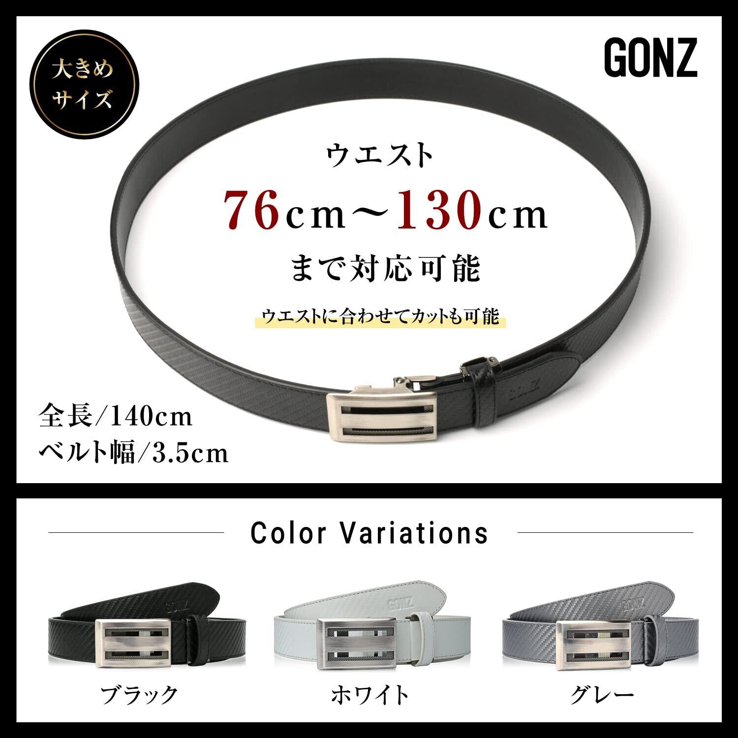[GONZ] 【かっこよく魅せる】ゴルフ ベルト メンズ 紳士ベルト メンズ 大きいサイズ 無段階調節ベルト