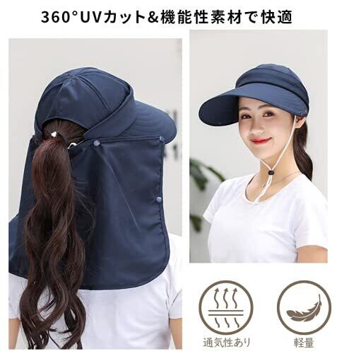 [supersakura] ガーデニング 帽子 農園帽 サンバイザー UVカット つば広 折りたたみ 紫外線対策 日よけ 首ガード おしゃれ帽子 フェイスカバー 農作業 園芸 アウトドア 釣り