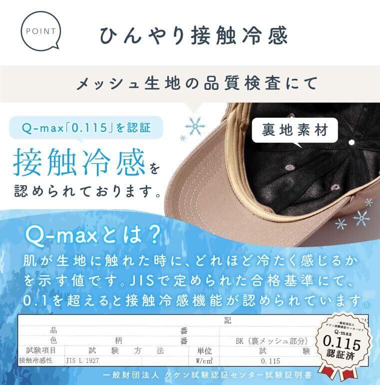 キャップの表面は通気性や速乾性に優れた、 春夏にぴったりのハリのあるコットン(綿)を100%使用。 キャップの裏地は、 ほんのり冷たい接触冷感のメッシュ素材を使用。 一般財団法人 ケケン試験認証センターにて、「接触冷感機能」も認証されており、 クールでドライな使用感を追求しました。 さらに手洗いで洗濯可能。 洗って繰り返し使えるから、汗や汚れを気にせず、 毎日気軽にご使用いただけます。