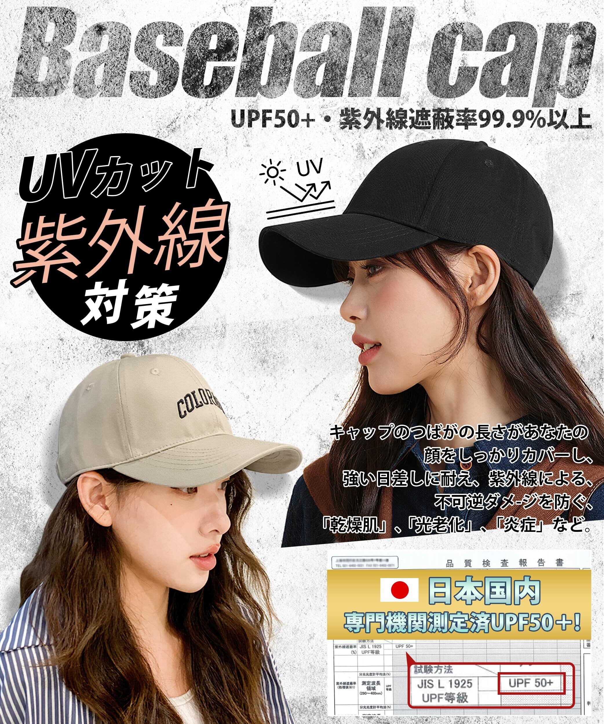 【UPF50+・紫外線UV対策】国内専門検査機関のUV遮蔽率測定試験で証明済み。紫外線保護指数UPF50+、UVカット率99.9%以上をカットした野球帽です!つばの長さは7.5cmがあり、あなたの顔をしっかりカバーし、紫外線から肌や髪をしっかり守り、暑い季節でも安心して使用可能。夏の日差しが強い日やアウトドア、レジャーシーンで大活躍するコットンキャップです。おしゃれだけでなく、実用性も備えた設計が魅力です。