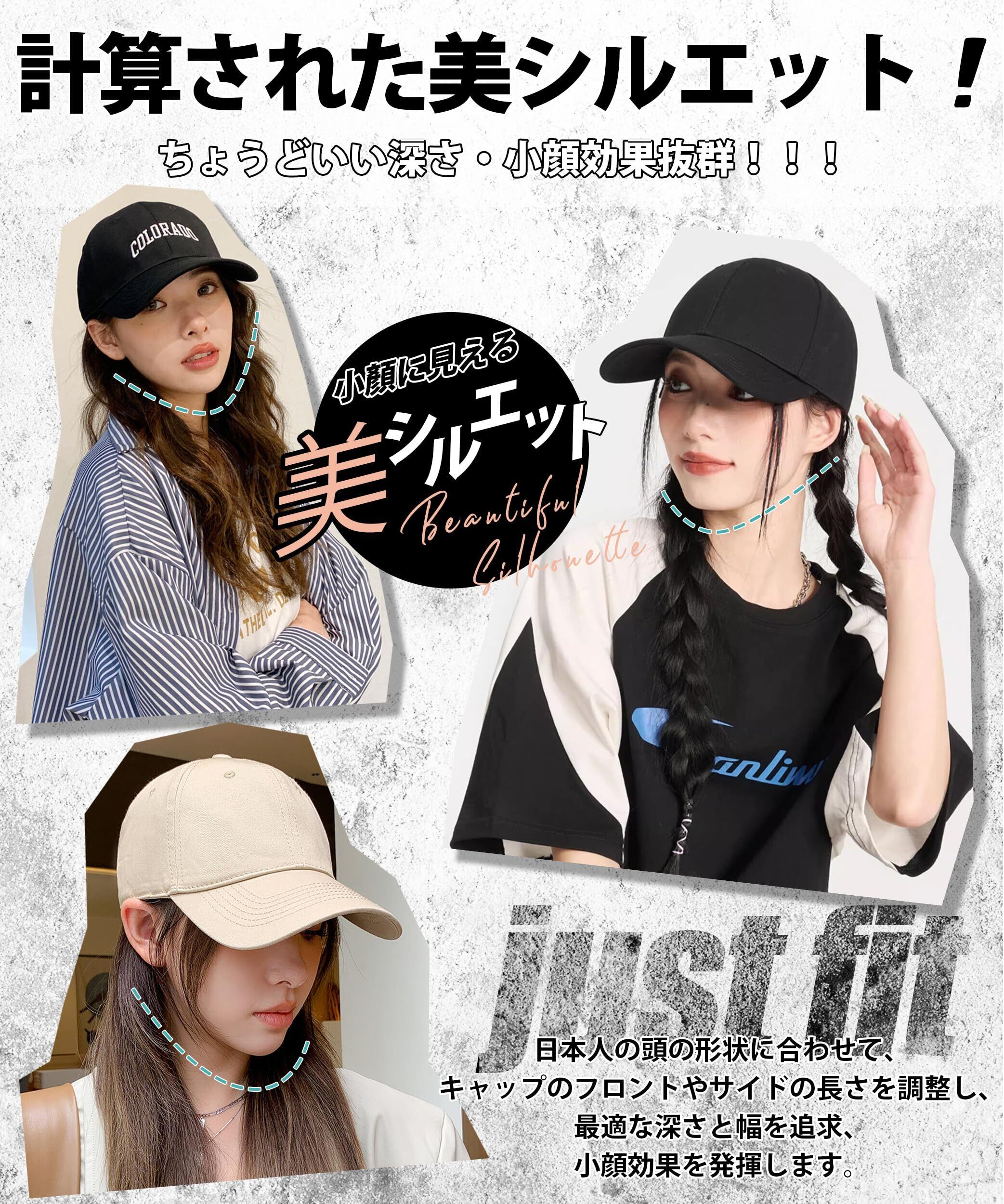 [PALAME] キャップ レディース 大きいサイズ 帽子 【コットン100%・UPF50+認定済・美シルエット】 UVカット帽子 紫外線対策 型崩れない 深め 小顔効果 シンプル おしゃれ 人気 野球帽 アウトドア 男女兼用 調整可能 56-62cm