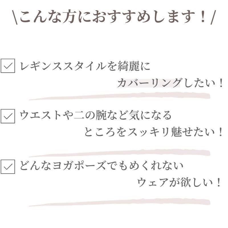 【めくれかえらず安心】ダウンドッグなど逆転系のポーズをとってもめくれず安心。身体を締め付けず、ゆったりと着れます。窮屈感ゼロ、身体を締め付けず、ゆったりと着れます。窮屈感ゼロ、体型の悩みをカバーするリラックスシルエット。気になるヒップ、わき、肩、腰周りを全てカバーしてくれ、長い着丈で周りの視線を気にせず動きに集中できます。
