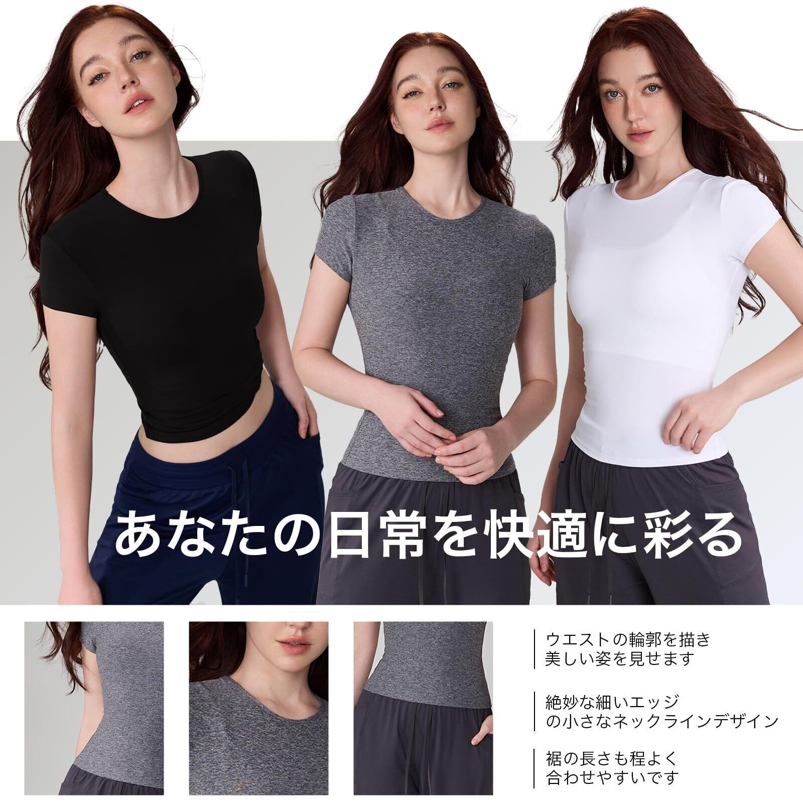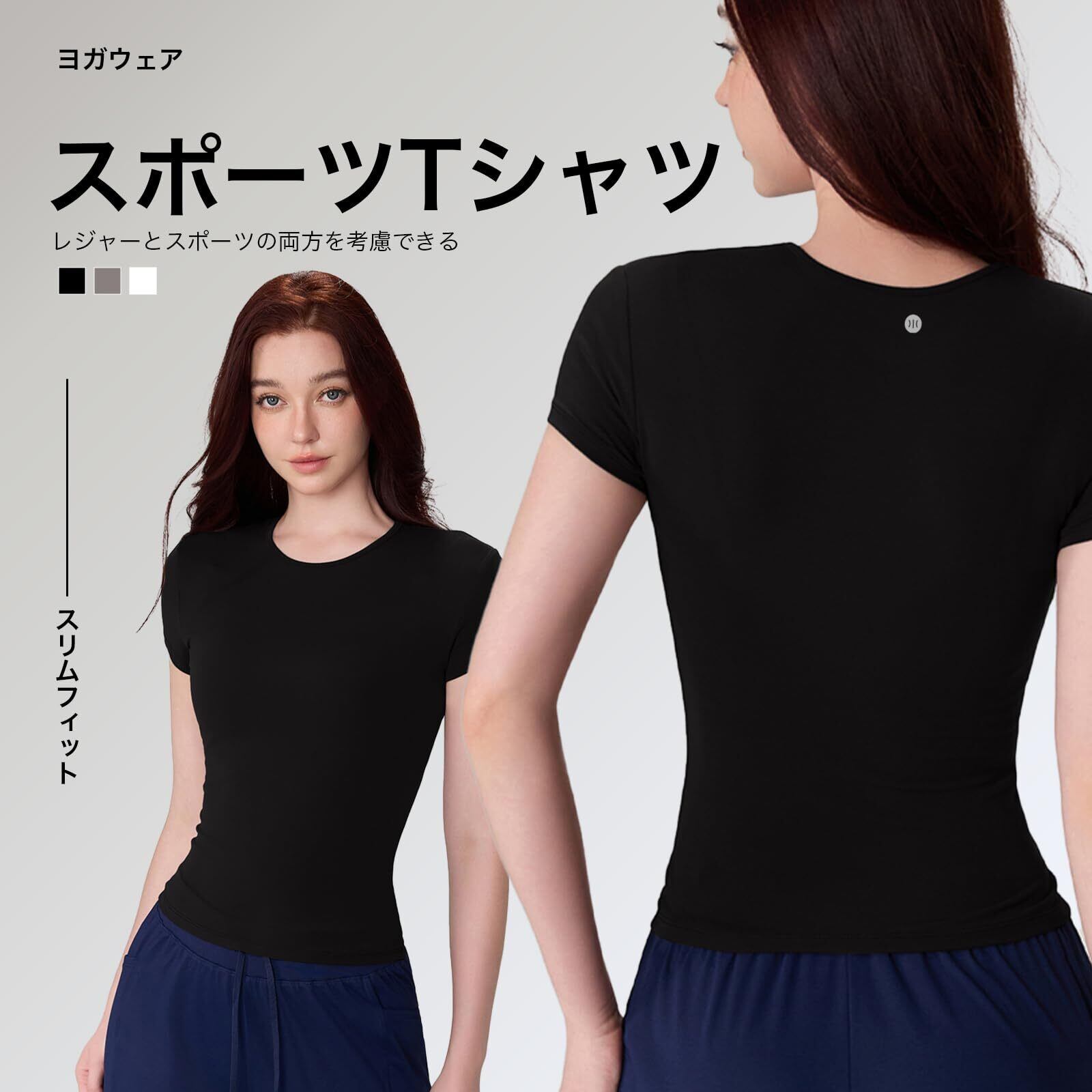 [IRCOLVE] ヨガウェア トップス スポーツシャツ 半袖 スリムフィット Tシャツ レディース スリムフィット ヨガtシャツ UVカット 冷感 伸縮性 吸汗速乾