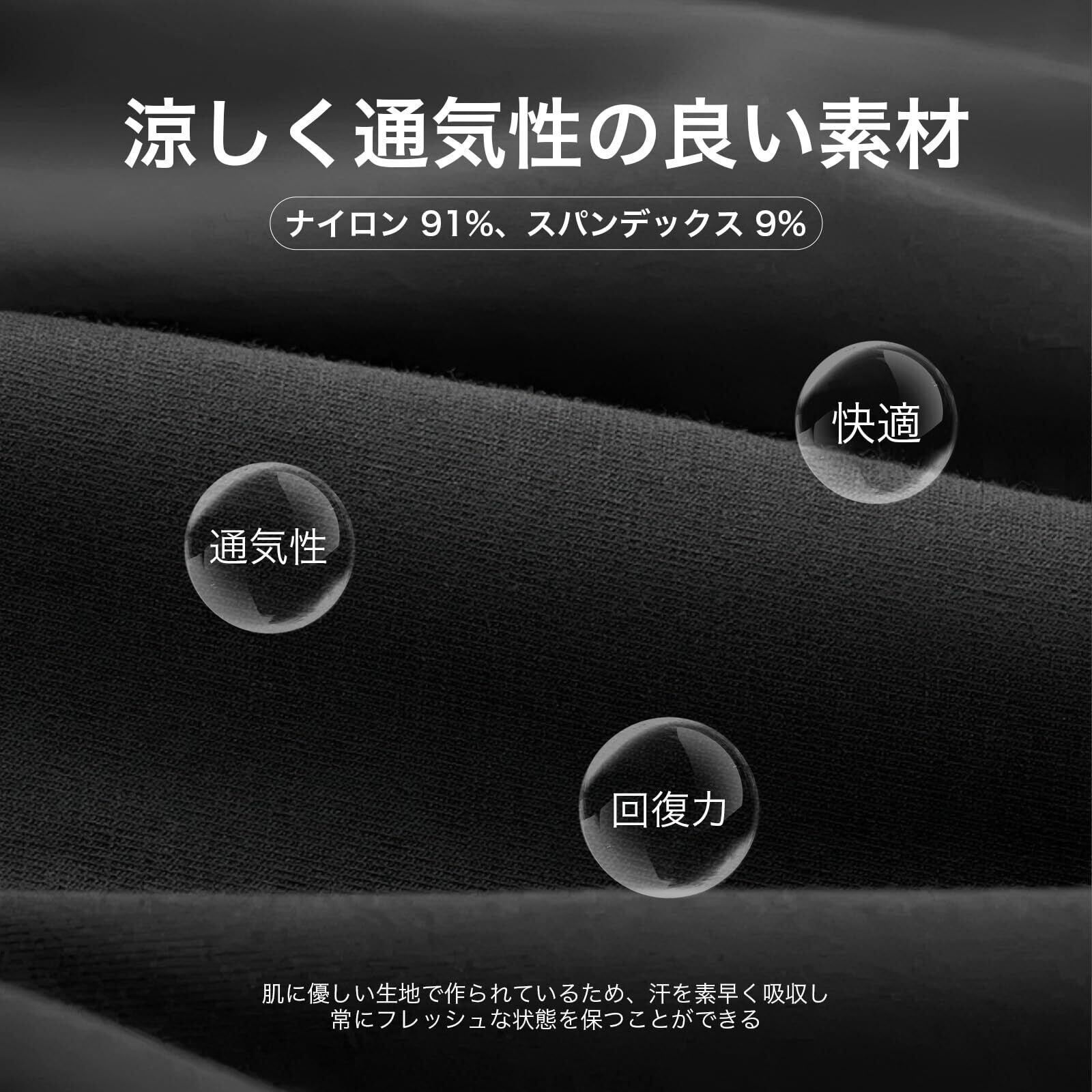 【高品質素材】91%のナイロンと3%のスパンデックスからなる素材は、ナイロンの耐久性と優れた通気性を備えており、運動中に発生する汗を速やかに排出し、身体を乾燥させます。スパンデックスの成分により、服に抜群の伸縮性が与えられ、動きがより自在になります