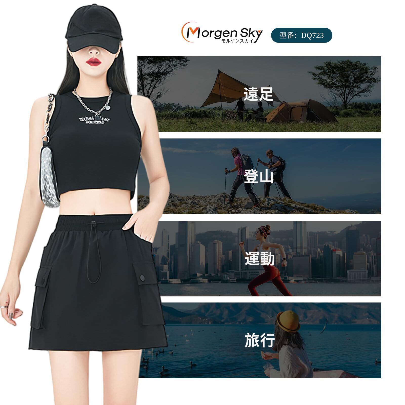 【数量限定】[MORGEN SKY] トレッキング スカート レディース キュロット アウトドアウェア ショート丈 インナーパンツ 薄手 吸汗速乾 耐久性 ウエストゴム ポケット付き スポーツ アウトドア 登山 お釣り 春夏秋 カジュアル オシャレ 無地 DQ723 | 無意味ステッカー