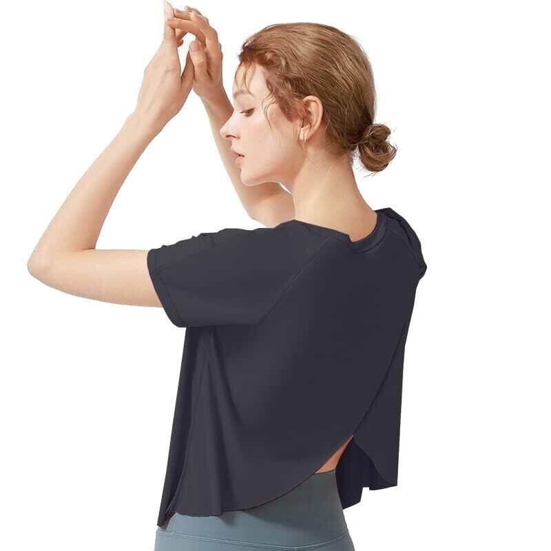 [MORGEN SKY] プラクティスシャツ 半袖シャツ 優雅 真夏ヨガウェア Tシャツ 吸汗速乾 冷感 UVカット UPF15 ストレッチ インナー ワンポイント トレーニング レディース ジュニア バレエ ダンス ランニング フィットネス YJ40
