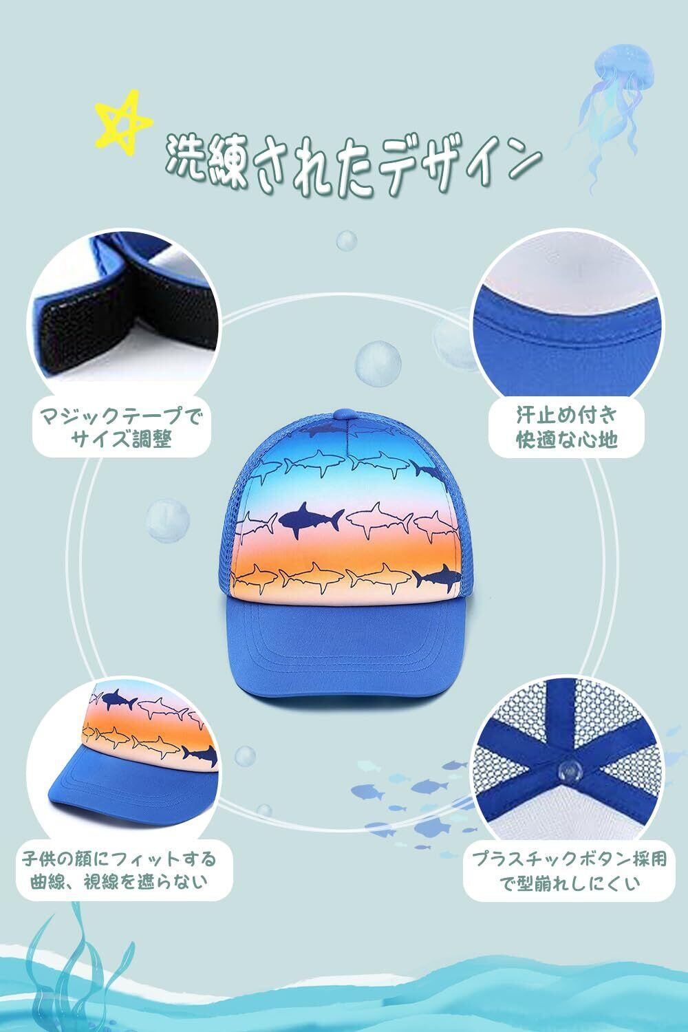 【様々なサイズを選べる】0-1歳:頭囲47cm、1-3歳:頭囲50cm、2-5歳:頭囲52cm、4-8歳:頭囲54cm。子供帽子のサイズはあくまでもご参考ください。お子様の頭囲よりサイズを選べんでください。お子様の頭周りにより、マジックテープで多少サイズ調整できる為、快適なかぶり心地と最高のフィット感を追求したキャップ キッズです。
