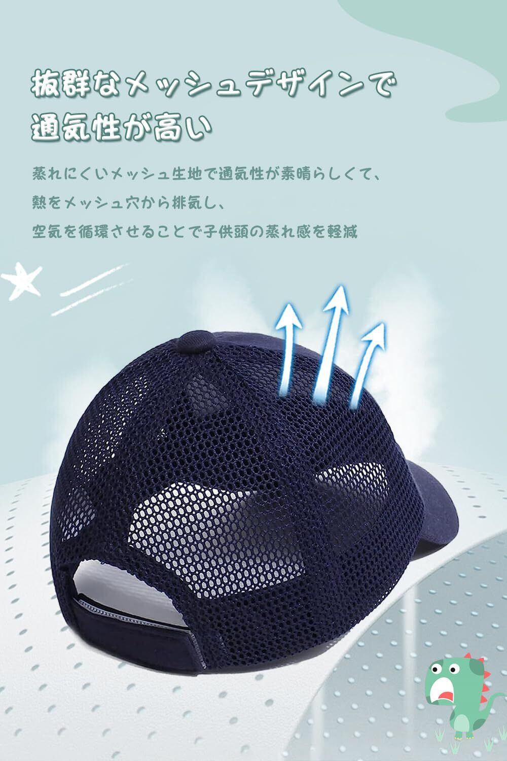 【通気性が抜群なメッシュキャップ】夏に相応しいキッズメッシュキャップ、通気性と速乾性も兼ね備えているメッシュキャップで蒸れなく、これからの時期の気になる紫外線対策にも最適です!蒸れにくいメッシュ生地で通気性が素晴らしくて、熱をメッシュ穴から排気し、空気を循環させることで蒸れを軽減します。長時間の着用しでも快適な被り心地を保ちます。