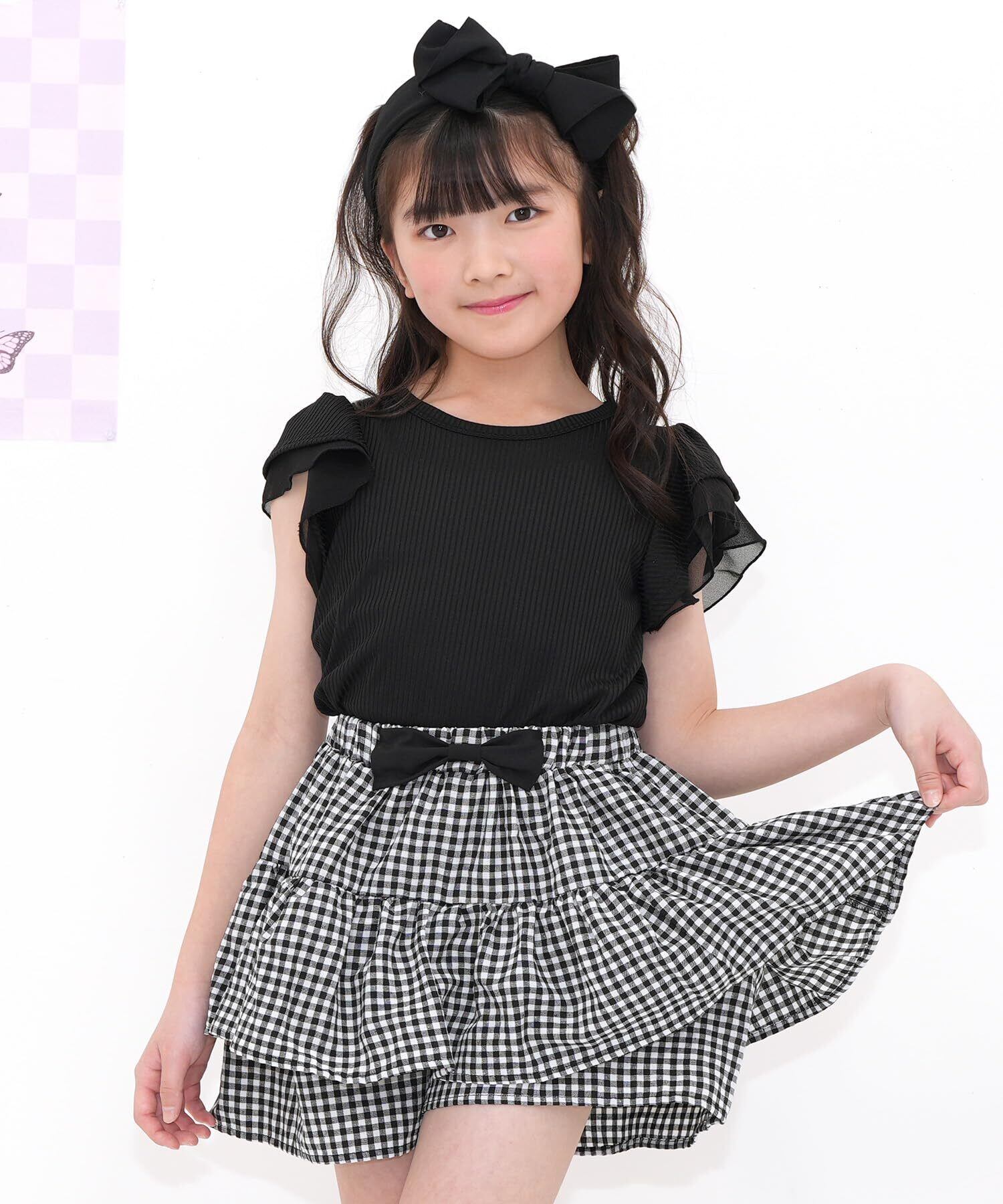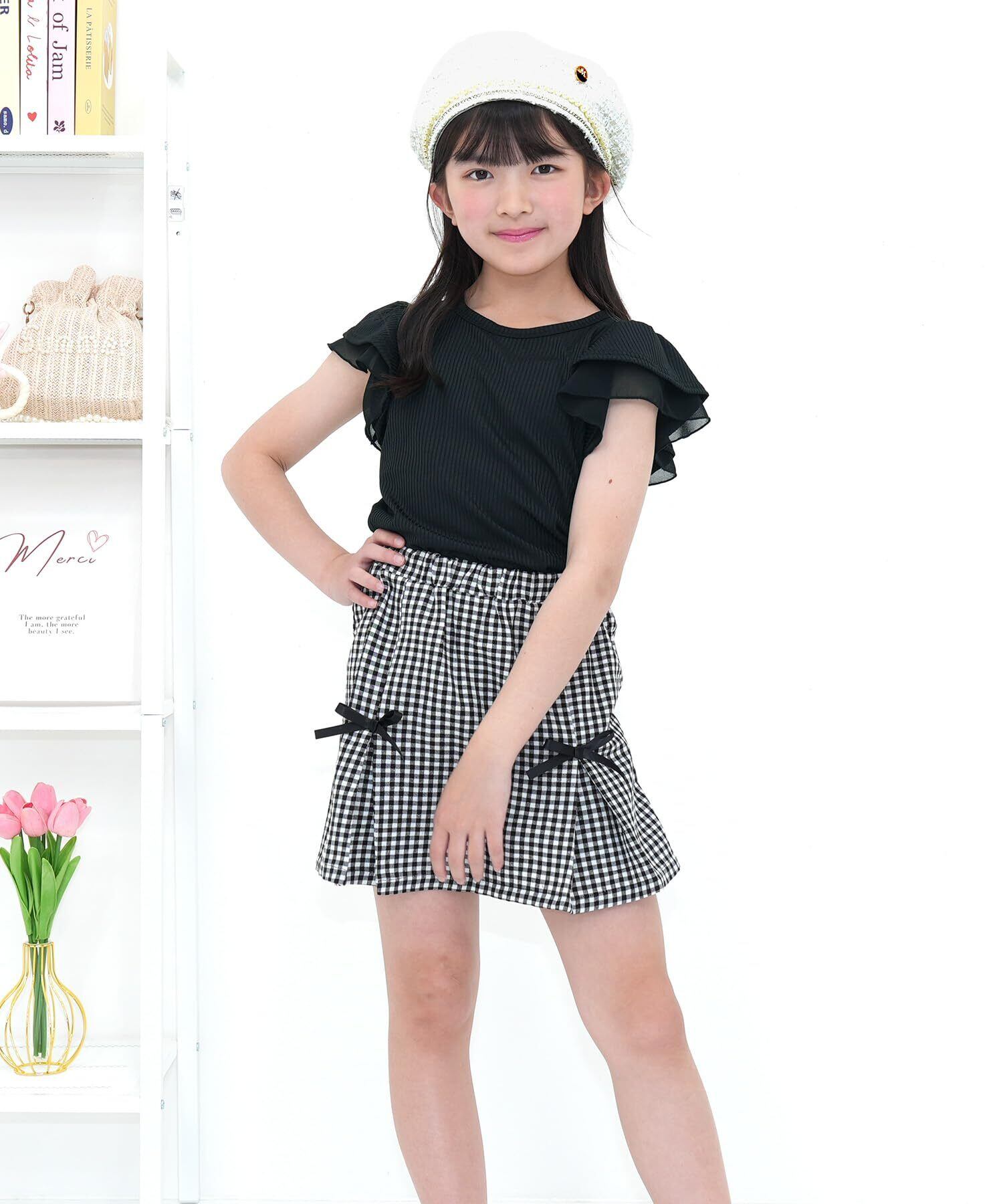 [Bee] ビー フレア袖トップス ガールズ 女の子 キッズ フリル 切替え 春 夏 tbb02560