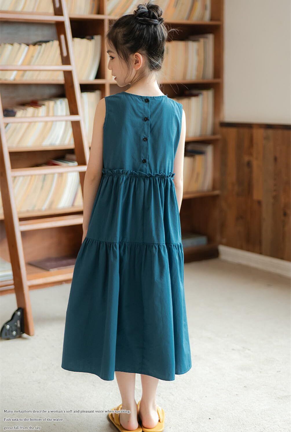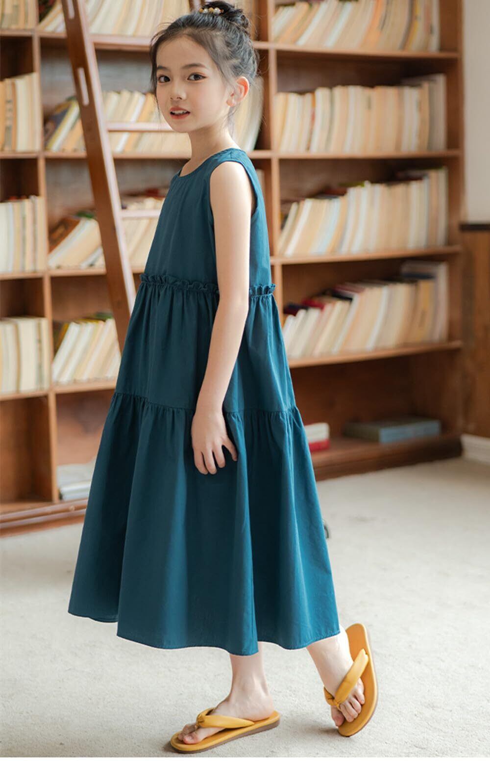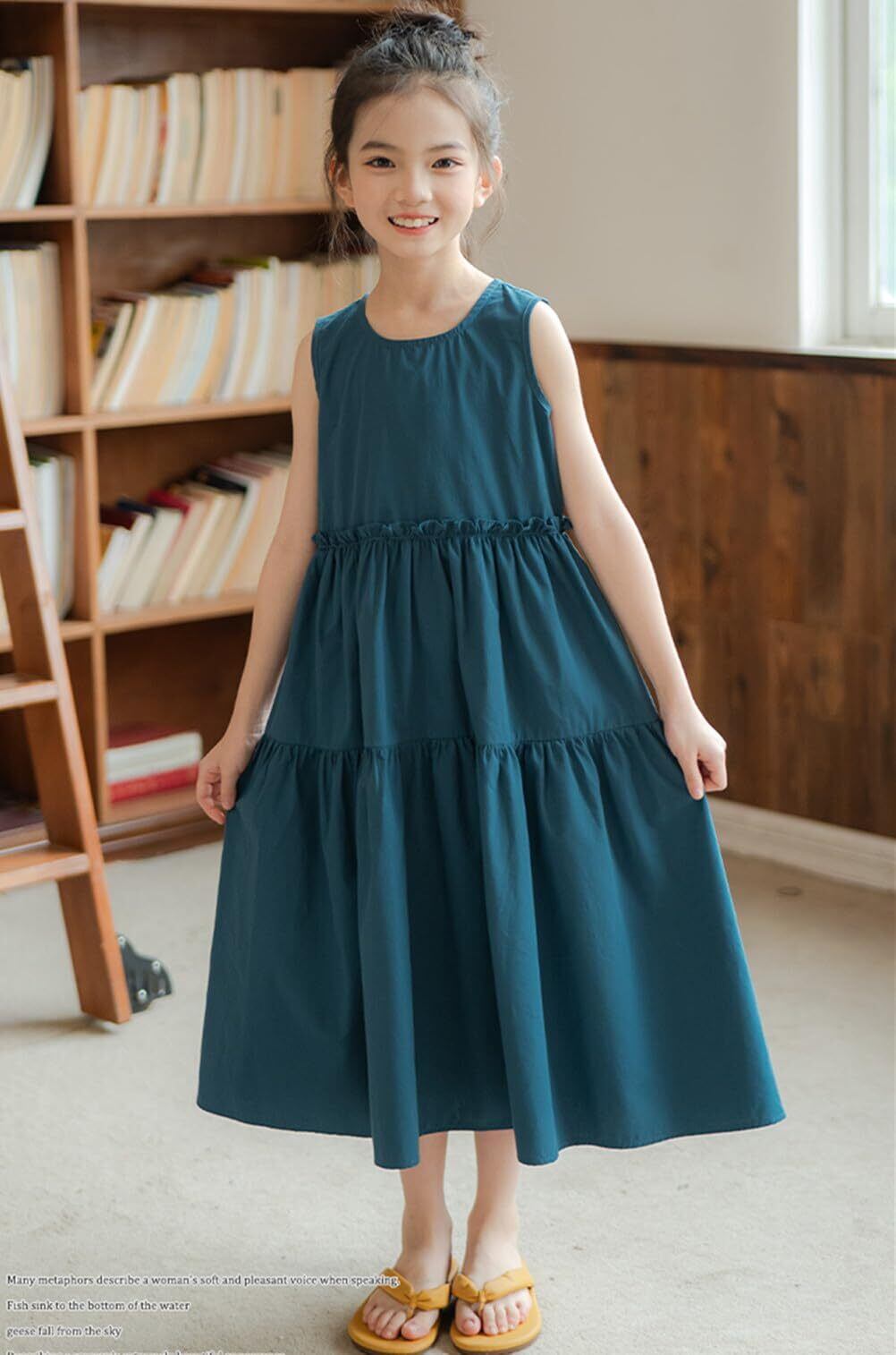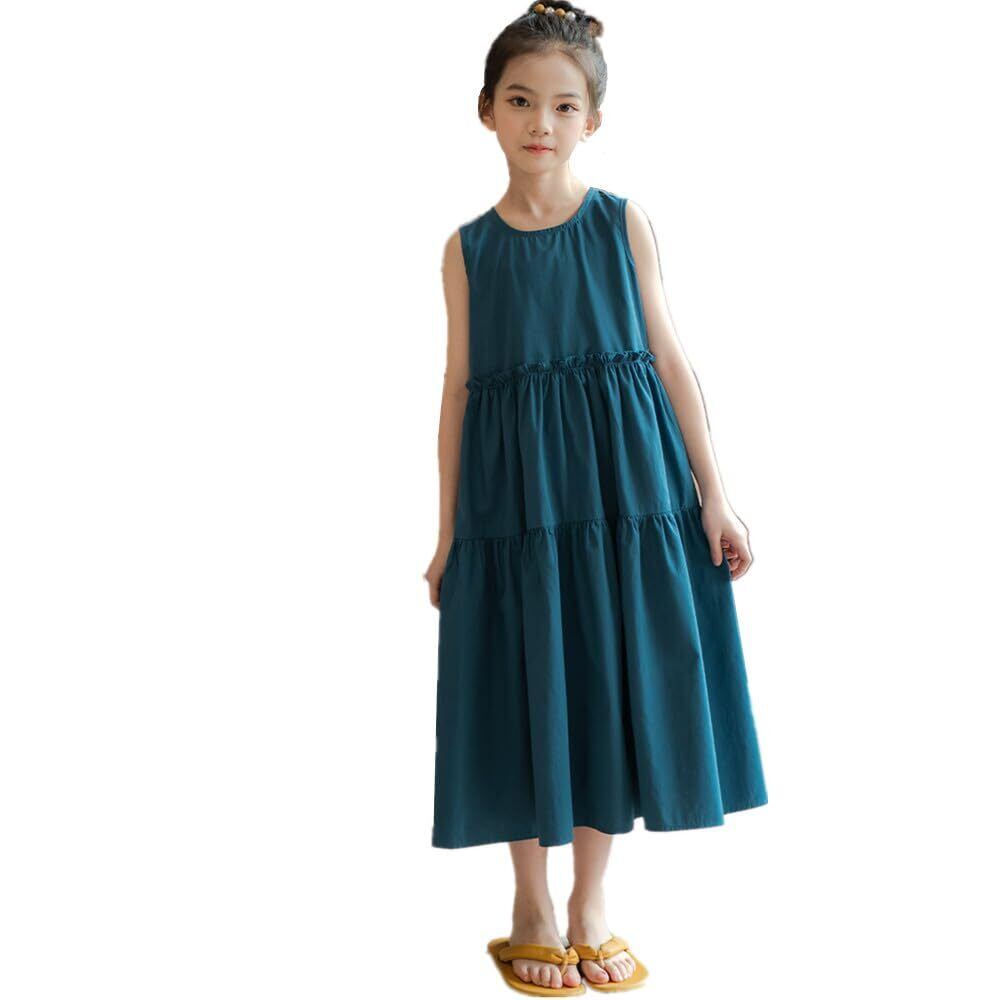 [DiiFoky] ガールズ 夏ワンピース ビーチドレス 袖なし Aライン 子供服 女の子 普段着 遊び着 旅行
