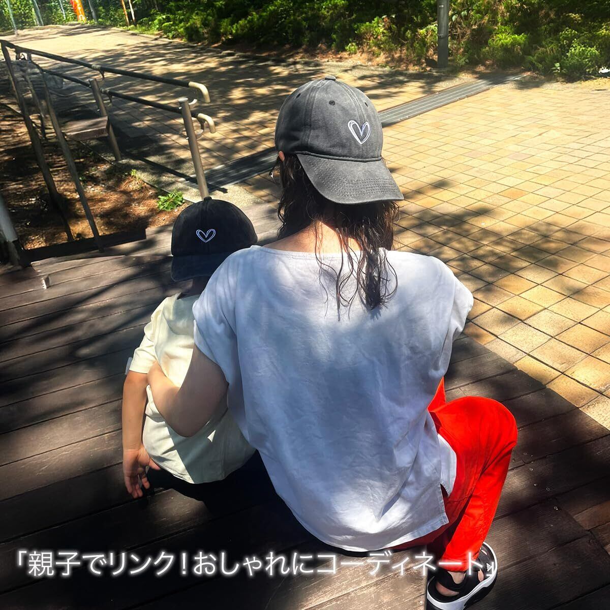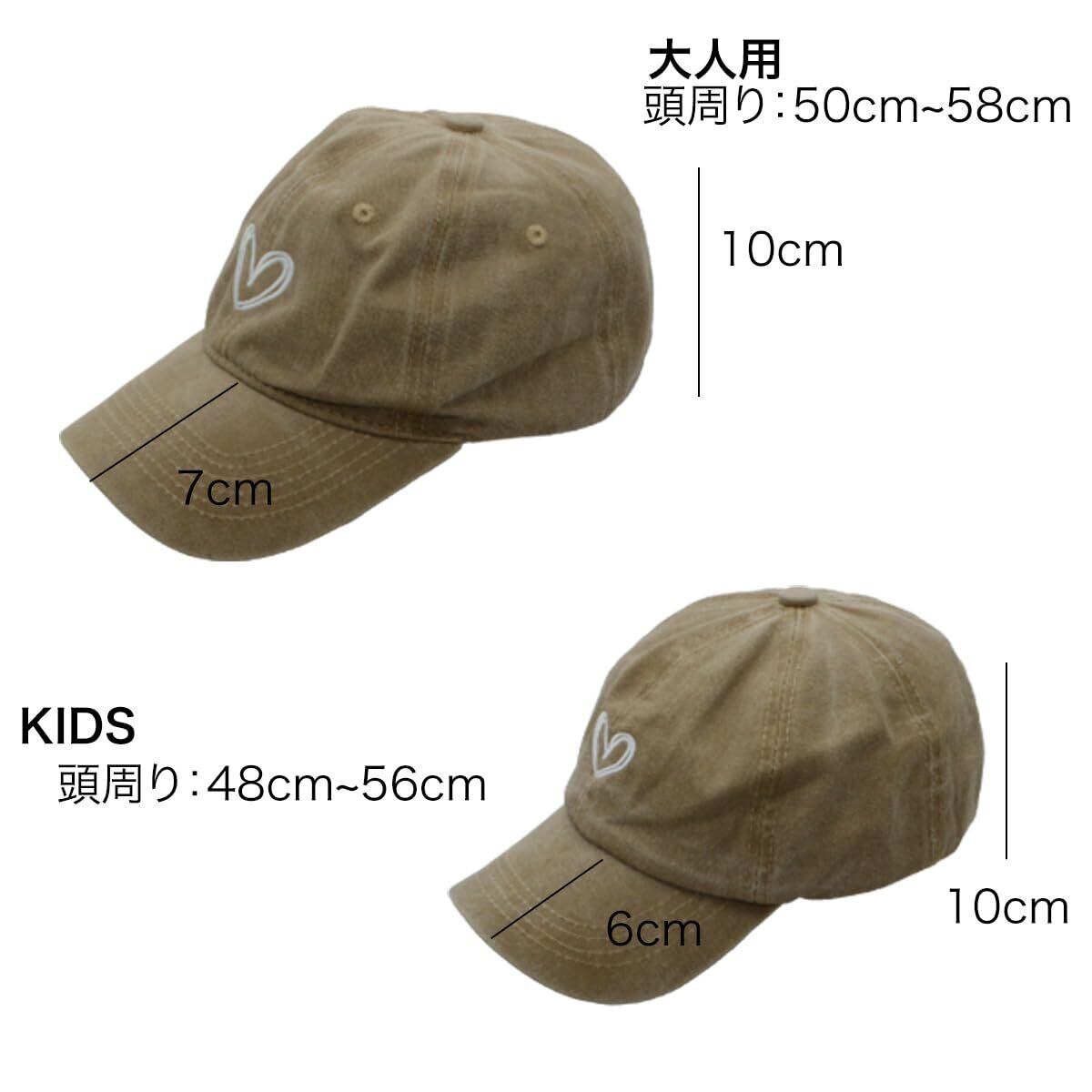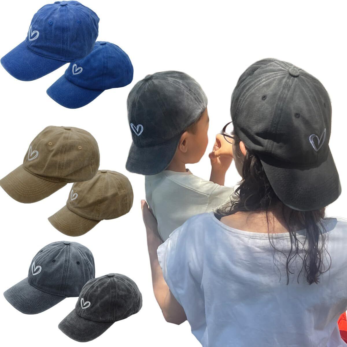 [BabyLips] ハート刺繍入りベースボールキャップ, コットン100%, 親子ペアキャップ, 大人用+子供用 2点セット/リンクコーデ/親子ペア帽子/ユニセックス フリーサイズ