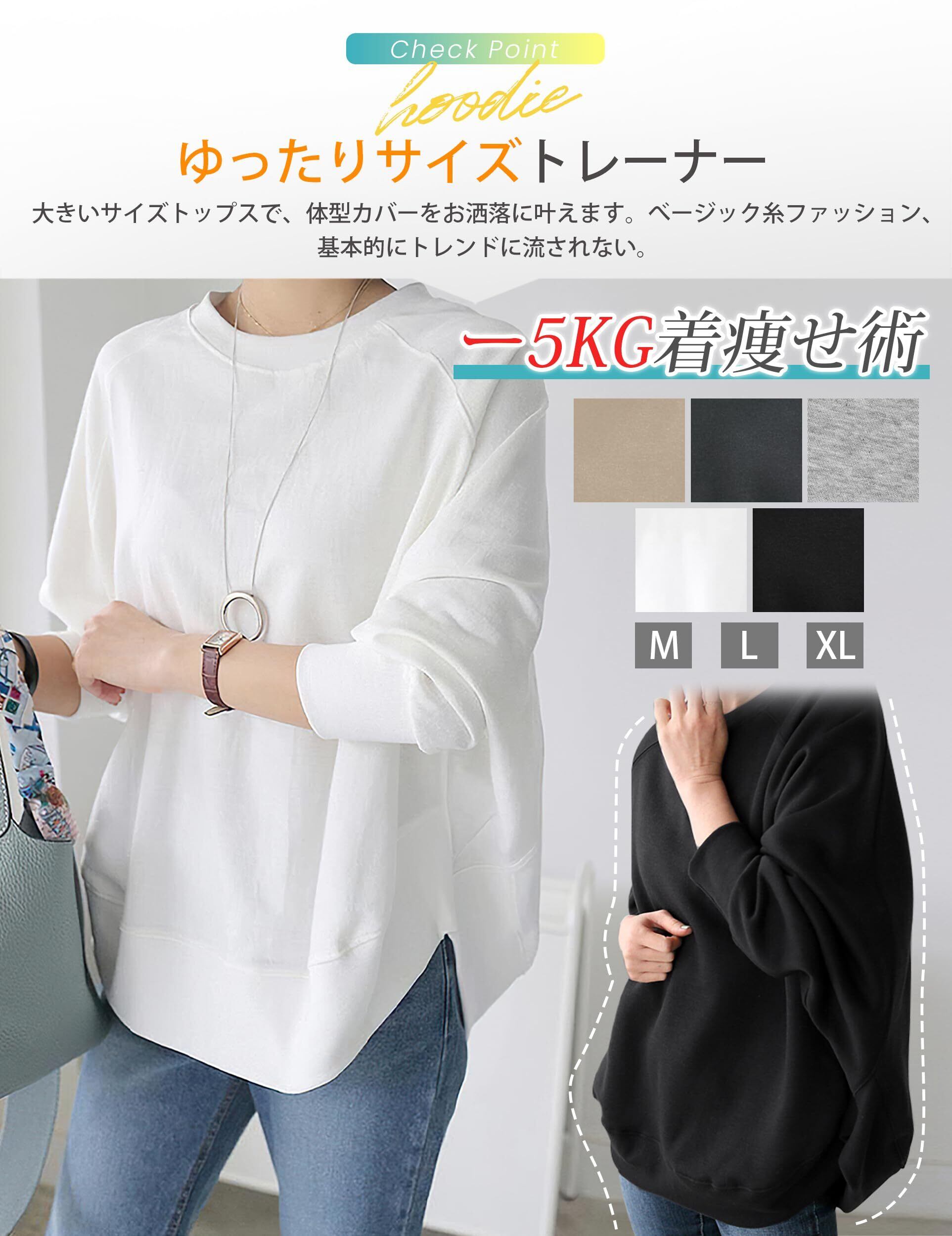 [SLEEPSINERO] 【高見え×体型隠し!】 トレーナー レディース 長袖 トップス パーカー スウェット ゆったり 体型カバー 着回し力高い 着痩せ オーバーサイズ カジュアル ビッグシルエット 長袖tシャツ 無地 シンプル きれいめ おしゃれ