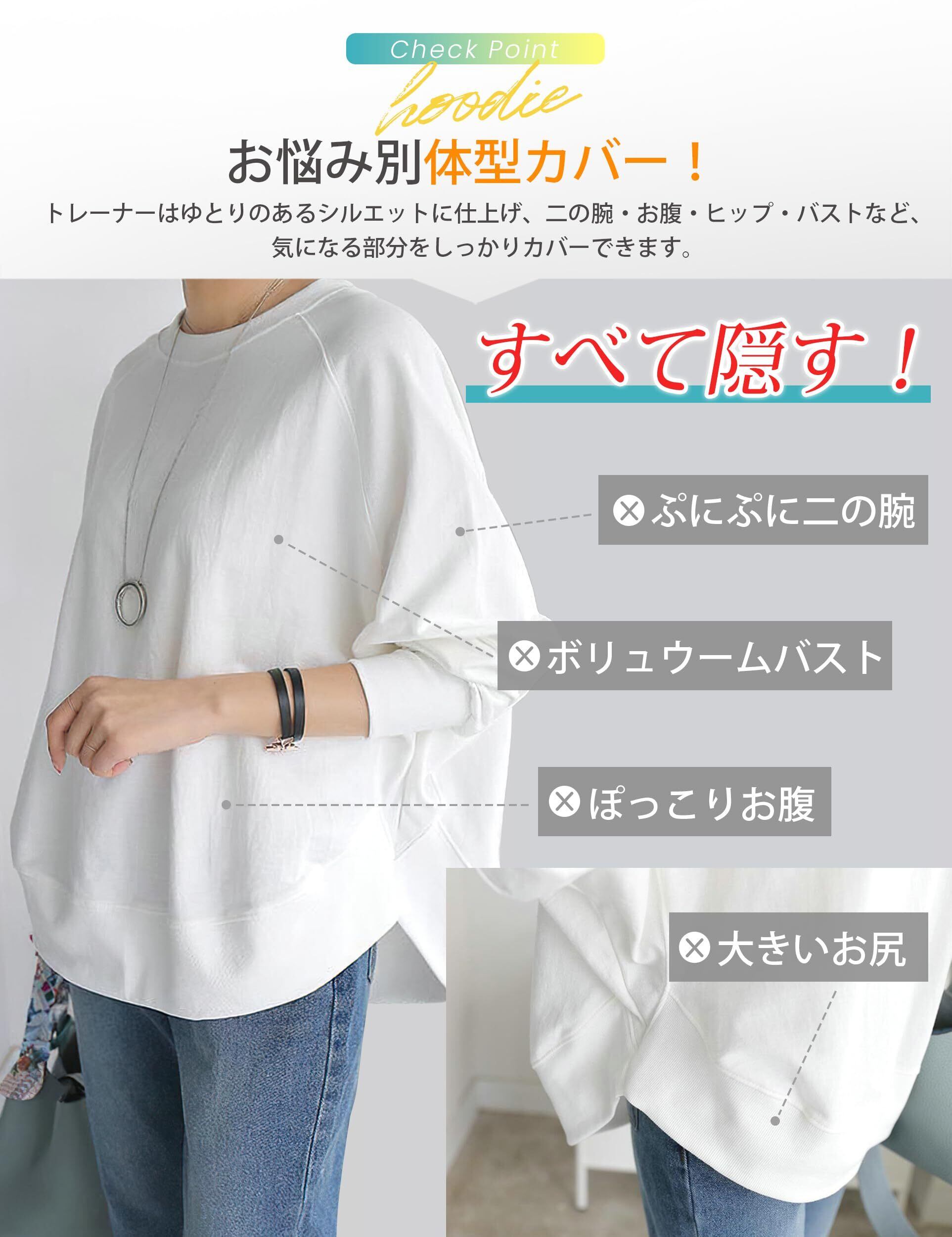 【在庫処分】[SLEEPSINERO] 【高見え×体型隠し!】 トレーナー レディース 長袖 トップス パーカー スウェット ゆったり 体型カバー 着回し力高い 着痩せ オーバーサイズ カジュアル ビッグシルエット 長袖tシャツ 無地 シンプル きれいめ おしゃれ | 無意味ステッカー