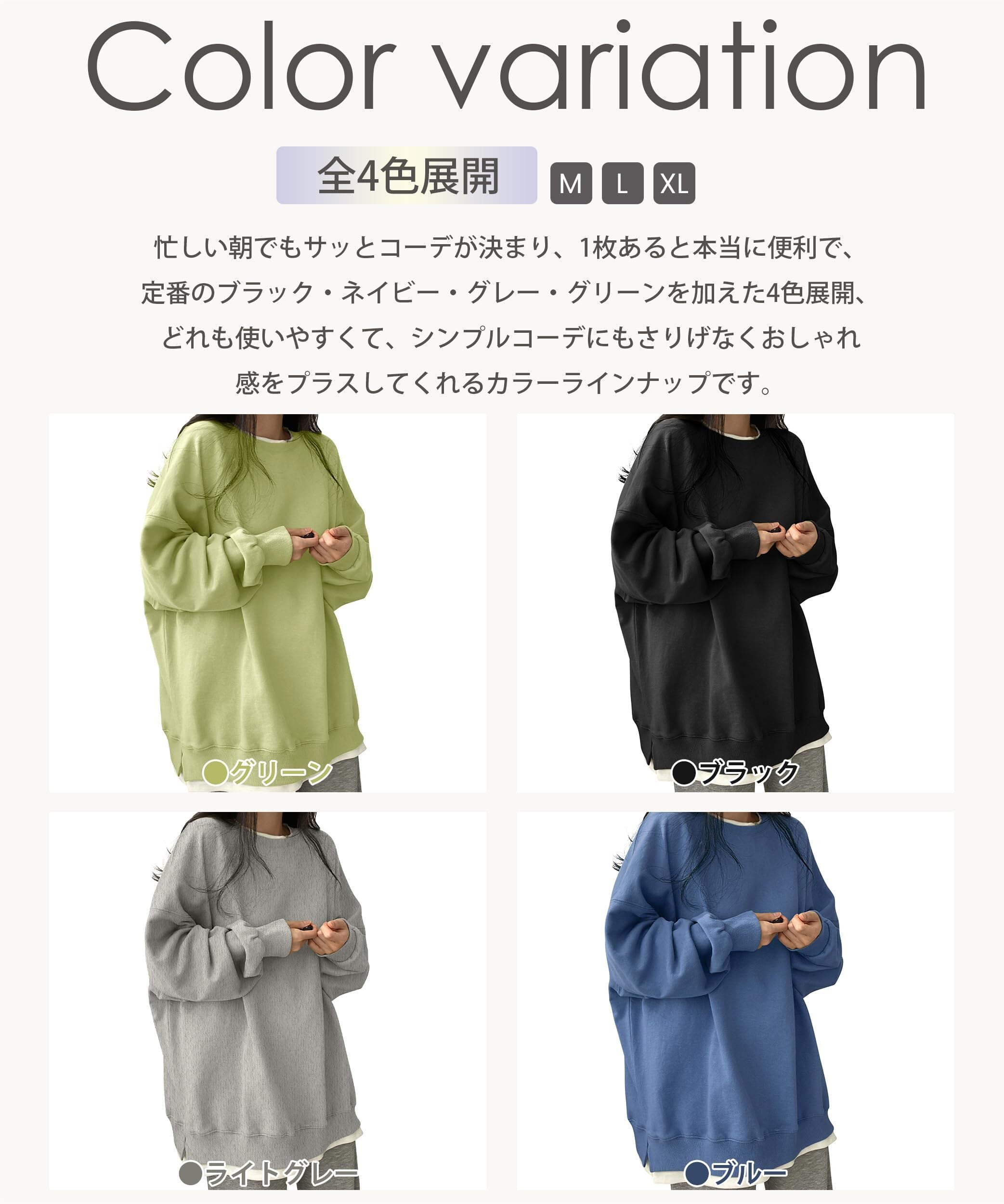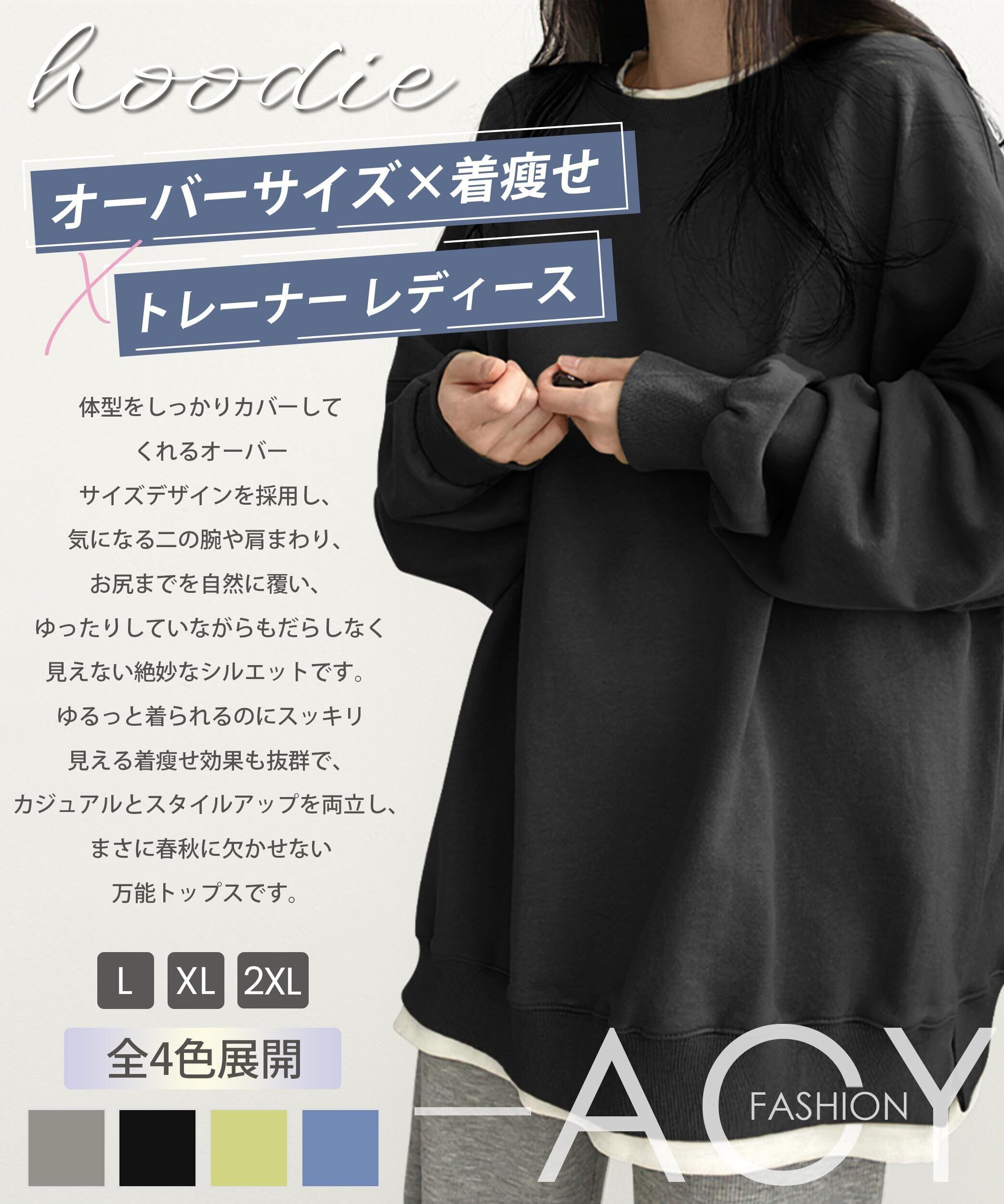 [AOY] トレーナー レディース 長袖 トップス 【オーバーサイズ×着瘦せ・重ね着風】 スウェット 体型カバー 大きいサイズ ゆったり レイヤード スリット 綿 着回し カジュアル ビッグシルエット 無地 おしゃれ シンプル 長め ロングtシャツ