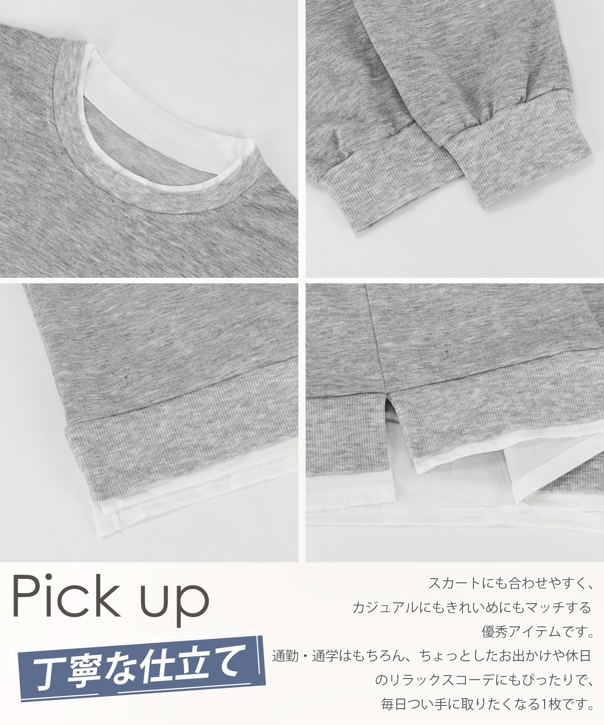 【1枚でレイヤード風コーデ完成】AOYのトレーナーは重ね着風を楽しみたいお客様にもおすすめ、裾のレイヤードデザインは1枚で着ても重ね着しているような立体感があり、コーデに奥行きをプラスしてくれます。さらに、AOYのトレーナーはサイドのスリットが抜け感を演出し、動きやすさと軽やかさも、さりげないディテールで全体をすっきりと見せ、気になる腰まわりも自然にカバーしてくれるのが嬉しいポイントです。AOYのトレーナーはカジュアルながらもこなれ感たっぷりで、1枚で“おしゃれ見え”が叶う優秀アイテムです。