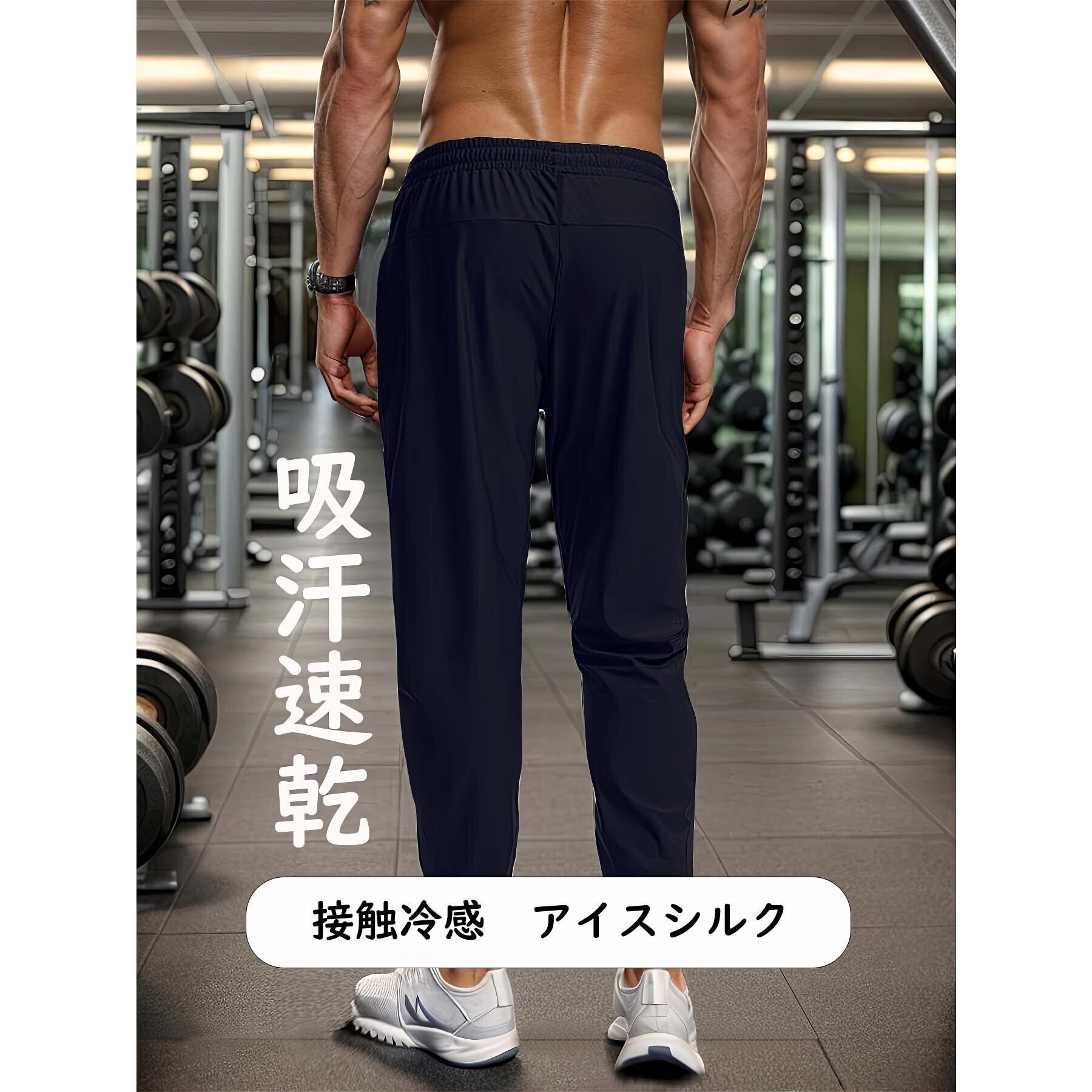 [Yezai] トレーニングウェア スポーツウェア ジョガーパンツ メンズ ズボン トレーニングパンツ ジム スポーツ 筋トレ 吸汗速乾 伸縮性 9分丈 接触冷感 アイスシルク 夏服