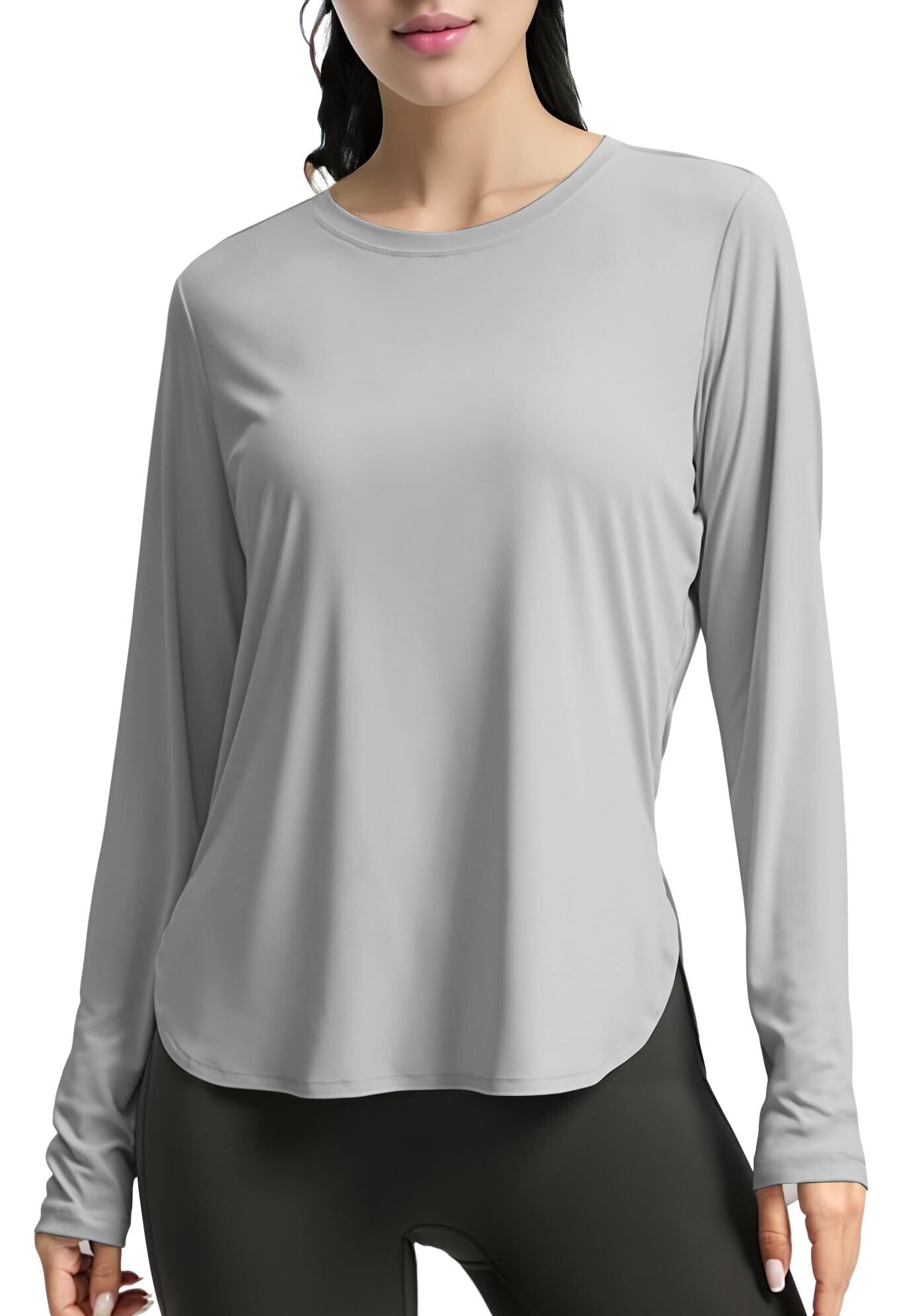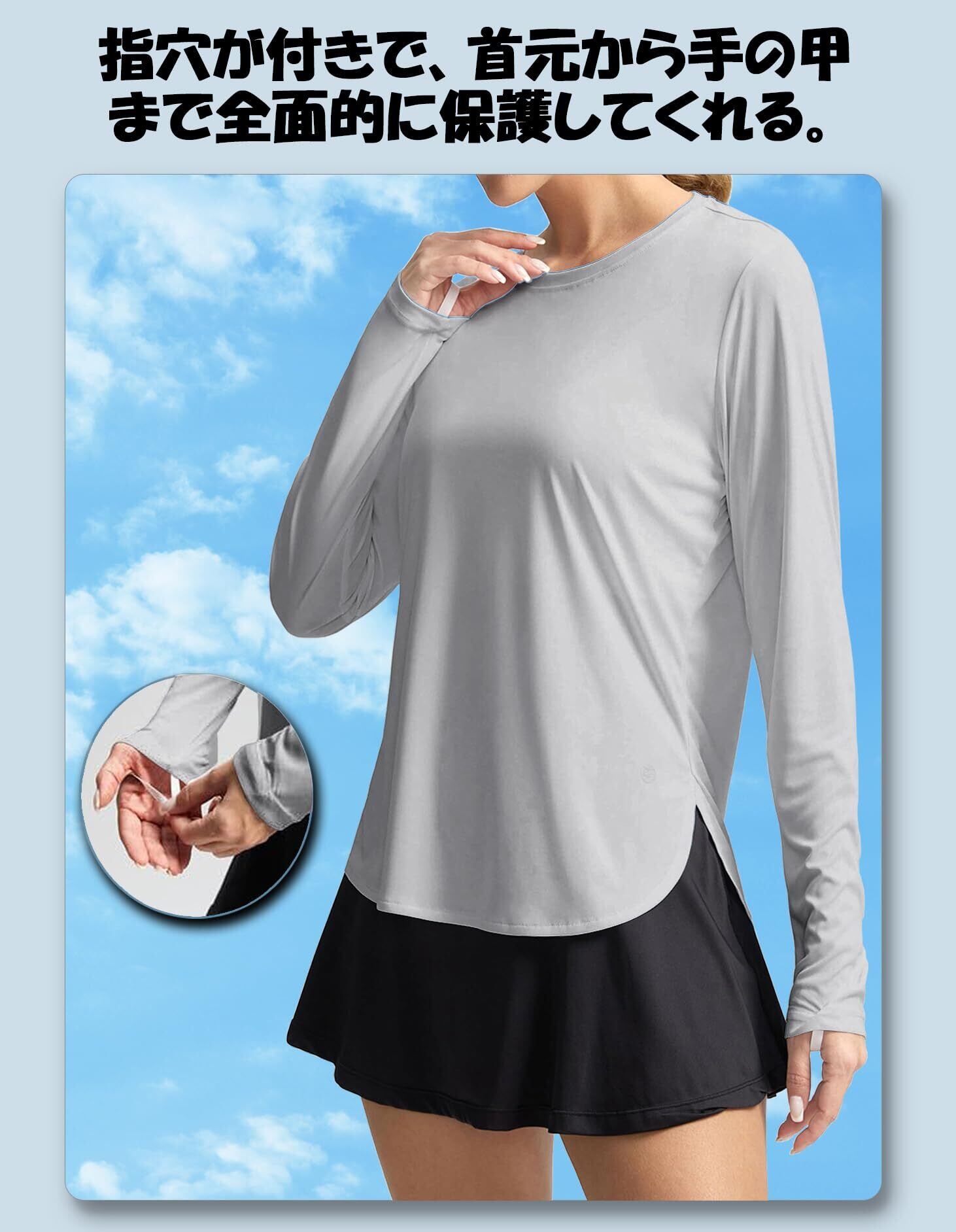 [Perturga] ラッシュガード レディース 長袖 tシャツ 紫外線対策 UPF50+ 日焼け止め 指穴 速乾 吸汗 丸首 UVカット 通気 ヨガ ウェア ダンス 春 夏 秋 冬 ロングスリーブ