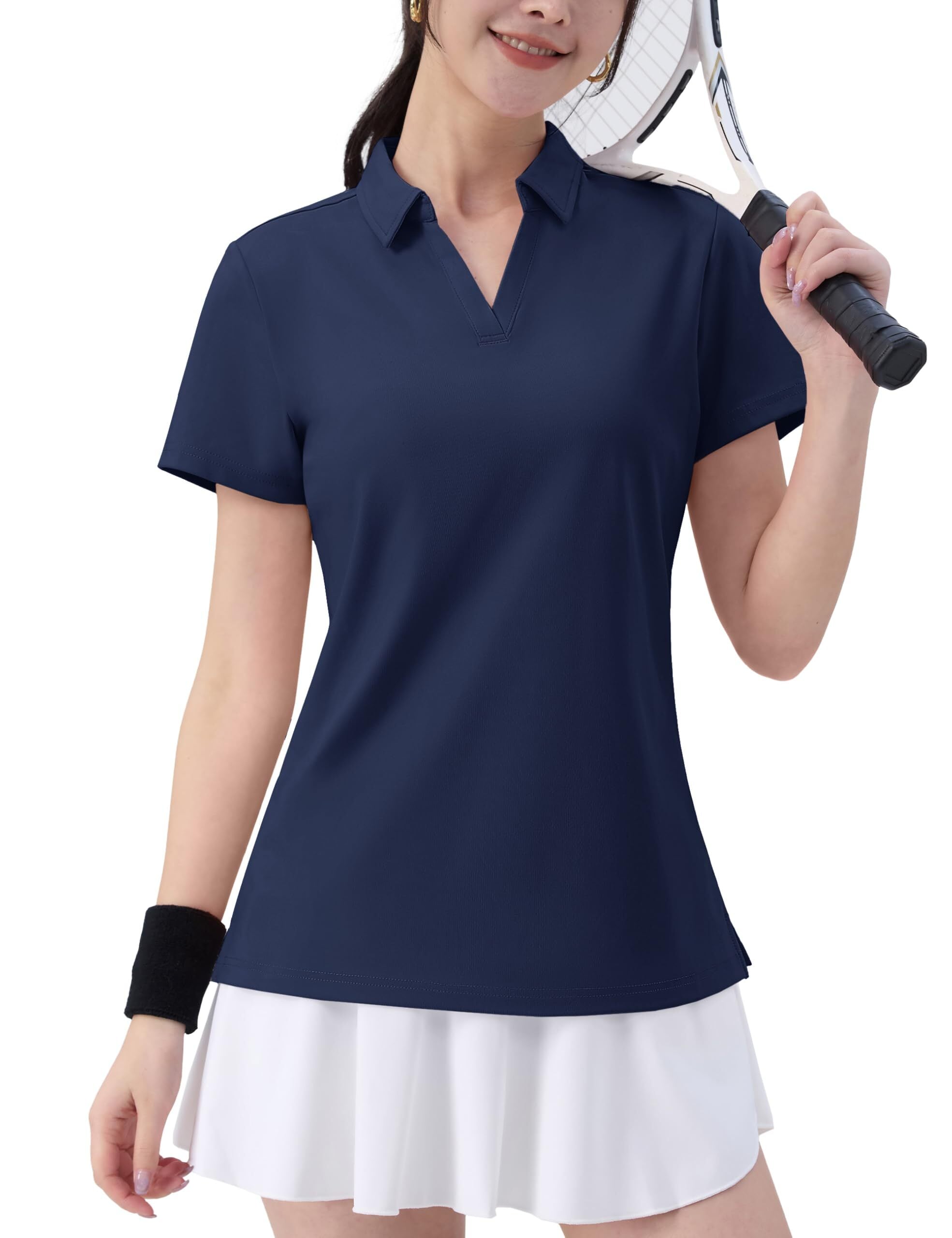 [TACVASEN] ポロシャツ レディース 速乾 vネック スボーツ 通勤ウエア ゴルフ ティーシャツ ハイキング upf50+ トレッキングウェア カジュアル オシャレ 仕事着 夏