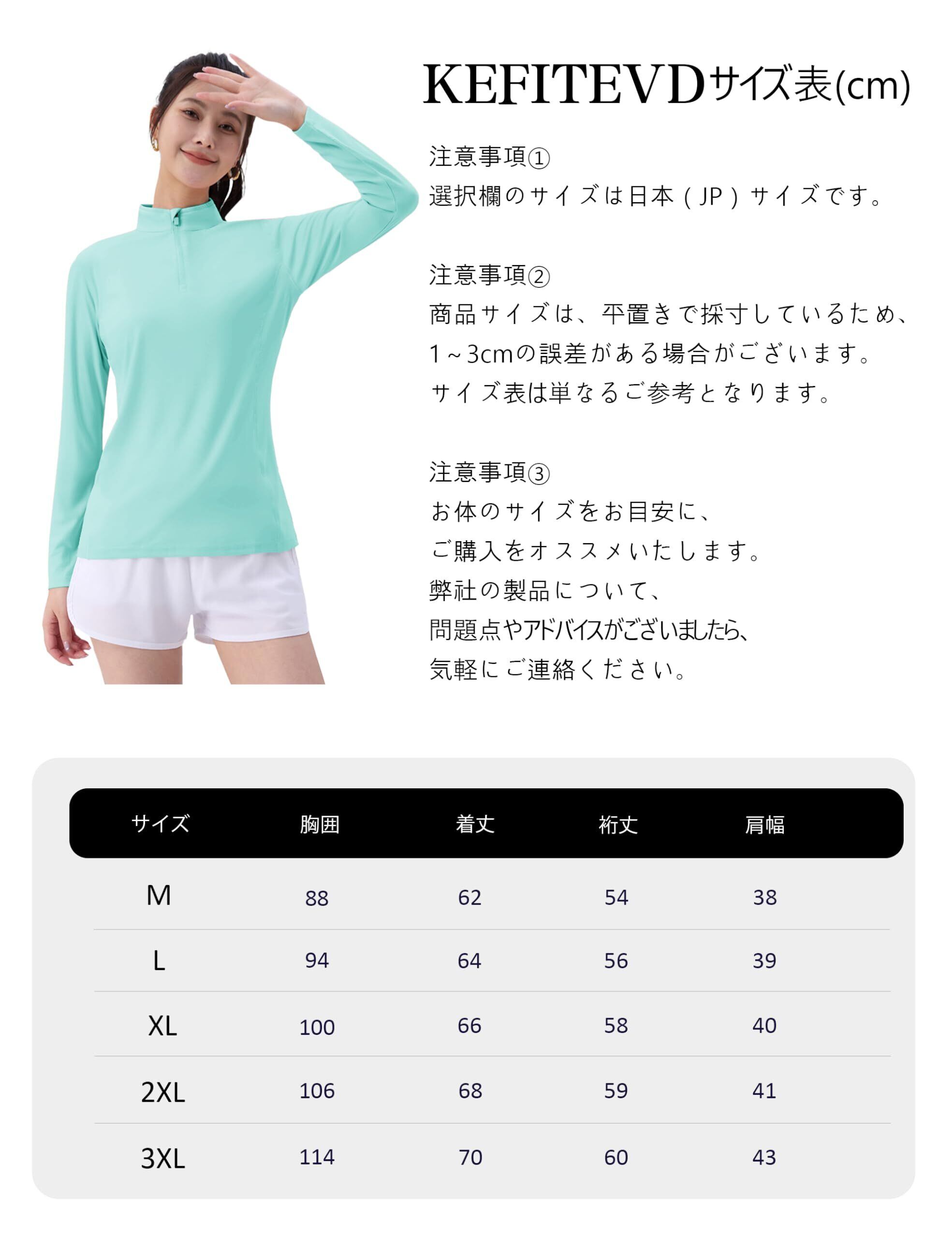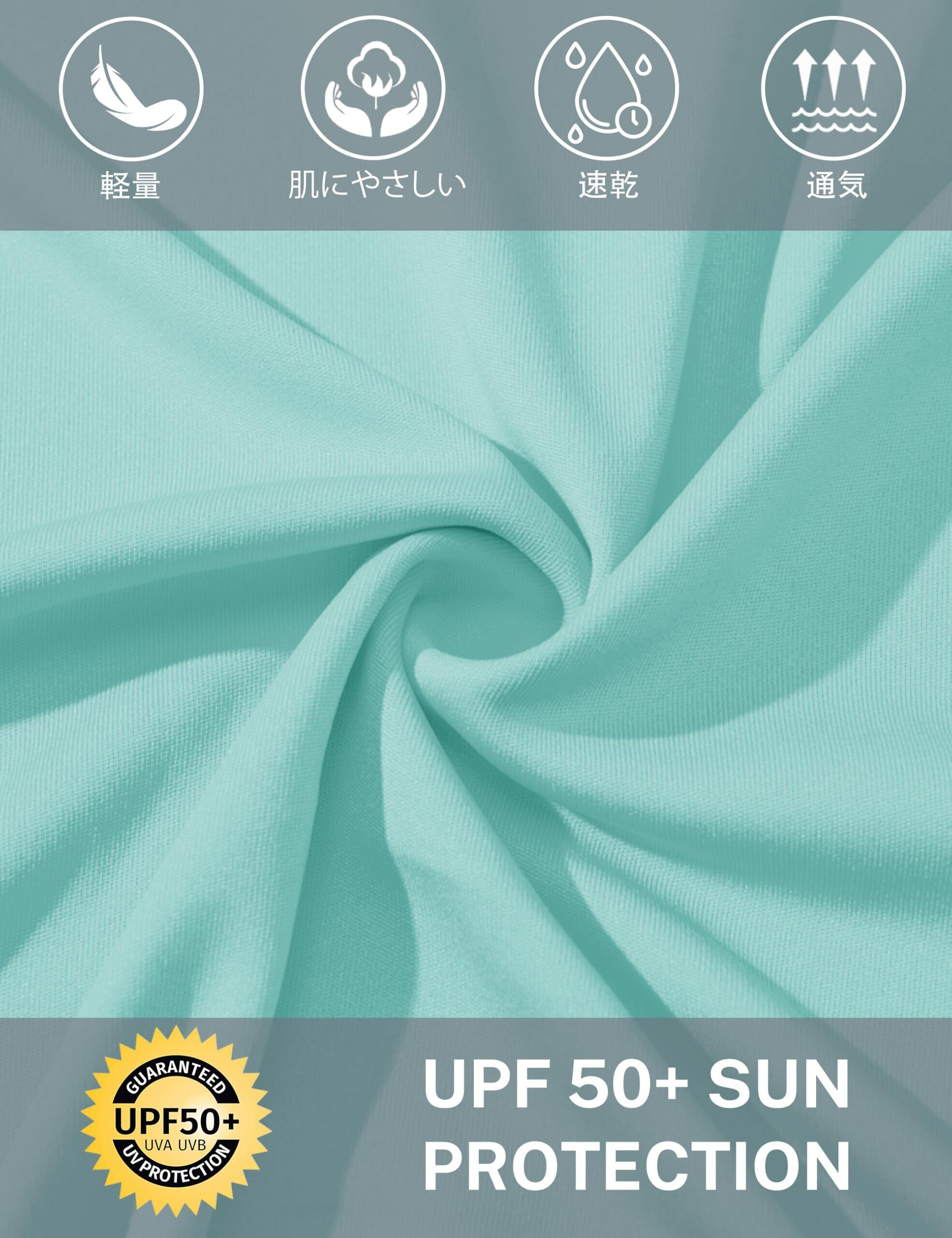 【UVカット】UPF50+の生地を採用しましたので、紫外線から肌を守ってくれます。また、ハイネックデザインで、気になる首元もしっかりとガードします。自転車や、運転などのお出かけにはもちろん、ビーチやレージャなどのアウトドア活動にも適用しています