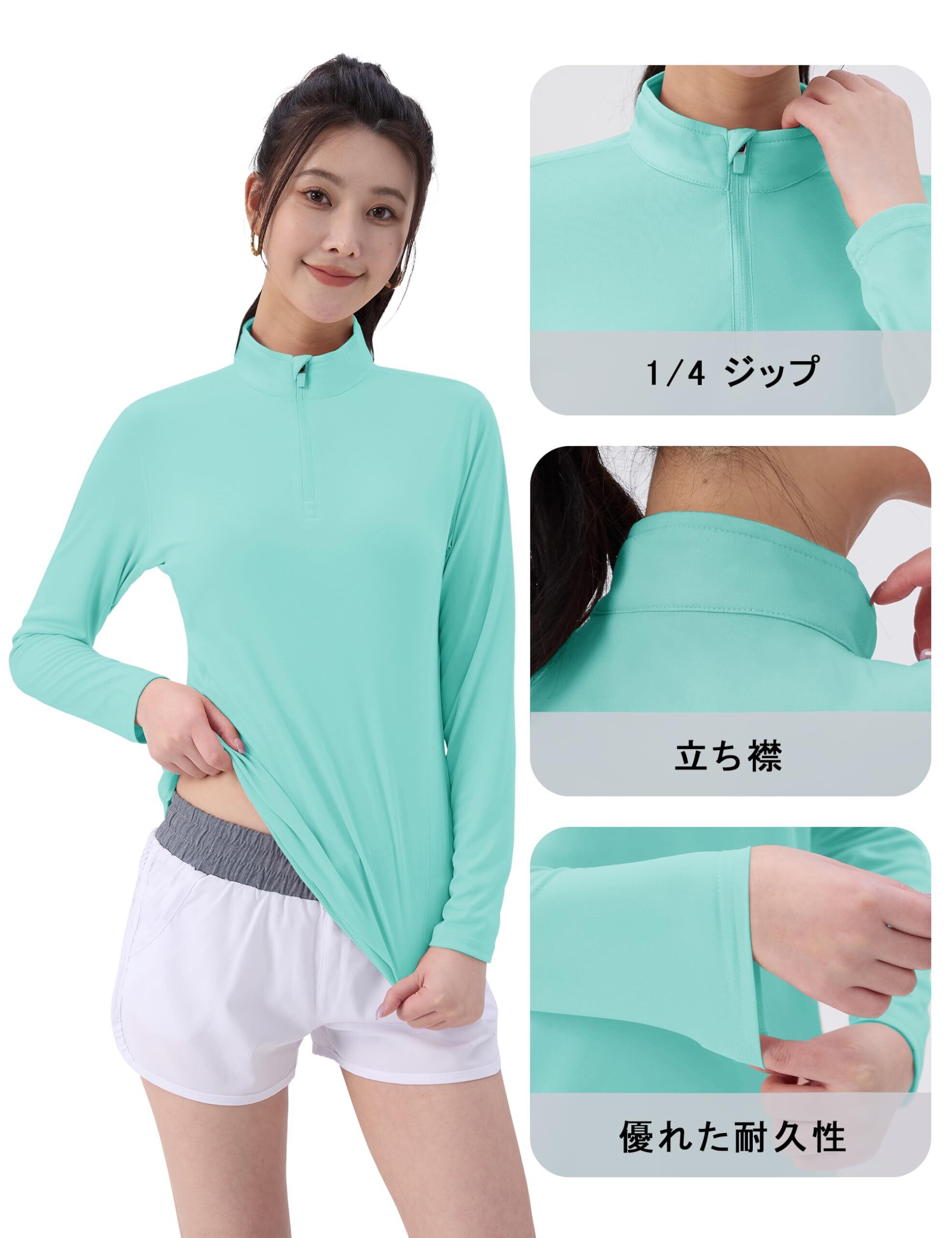 [KEFITEVD] 長袖tシャツ レディース スポーツ ハーフジップ uvカット トレーナー 吸汗速乾 プルオーバー UPF50+ ラッシュガード 薄手 無地 ゴルフウェア トップス