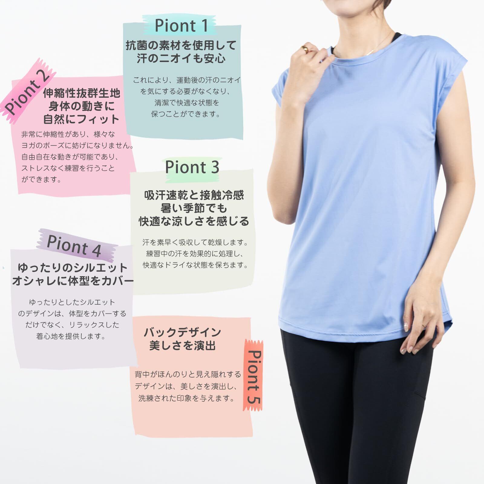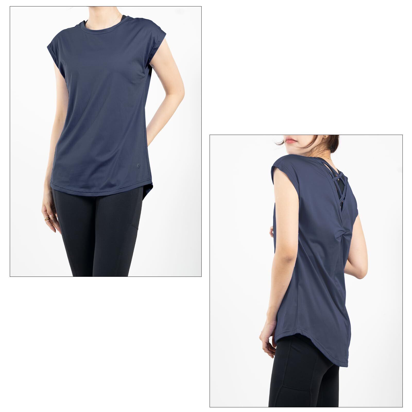 【新着商品】[iito.seasons] ヨガウェア レディース トップス バックデザイン 美背中 ロング丈 丈長 体型カバー Tシャツ クルーネック 半袖 ゆったり 体型カバー 冷感シャツ 無地 女性らしい スポーツ フィットネス トレーニング ルームウェア おしゃれ | 無意味ステッカー