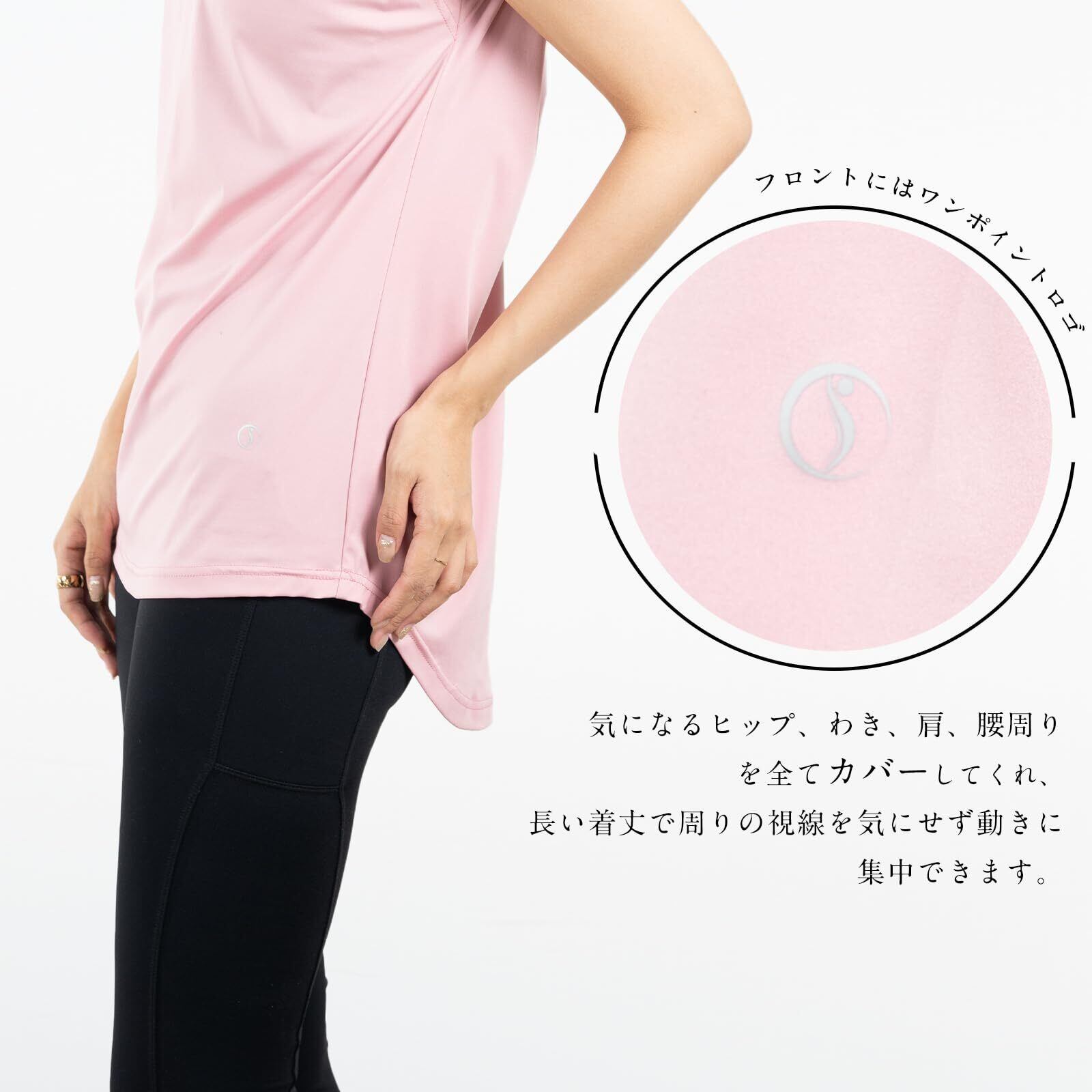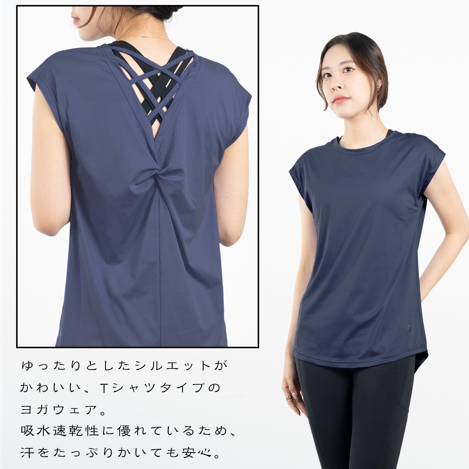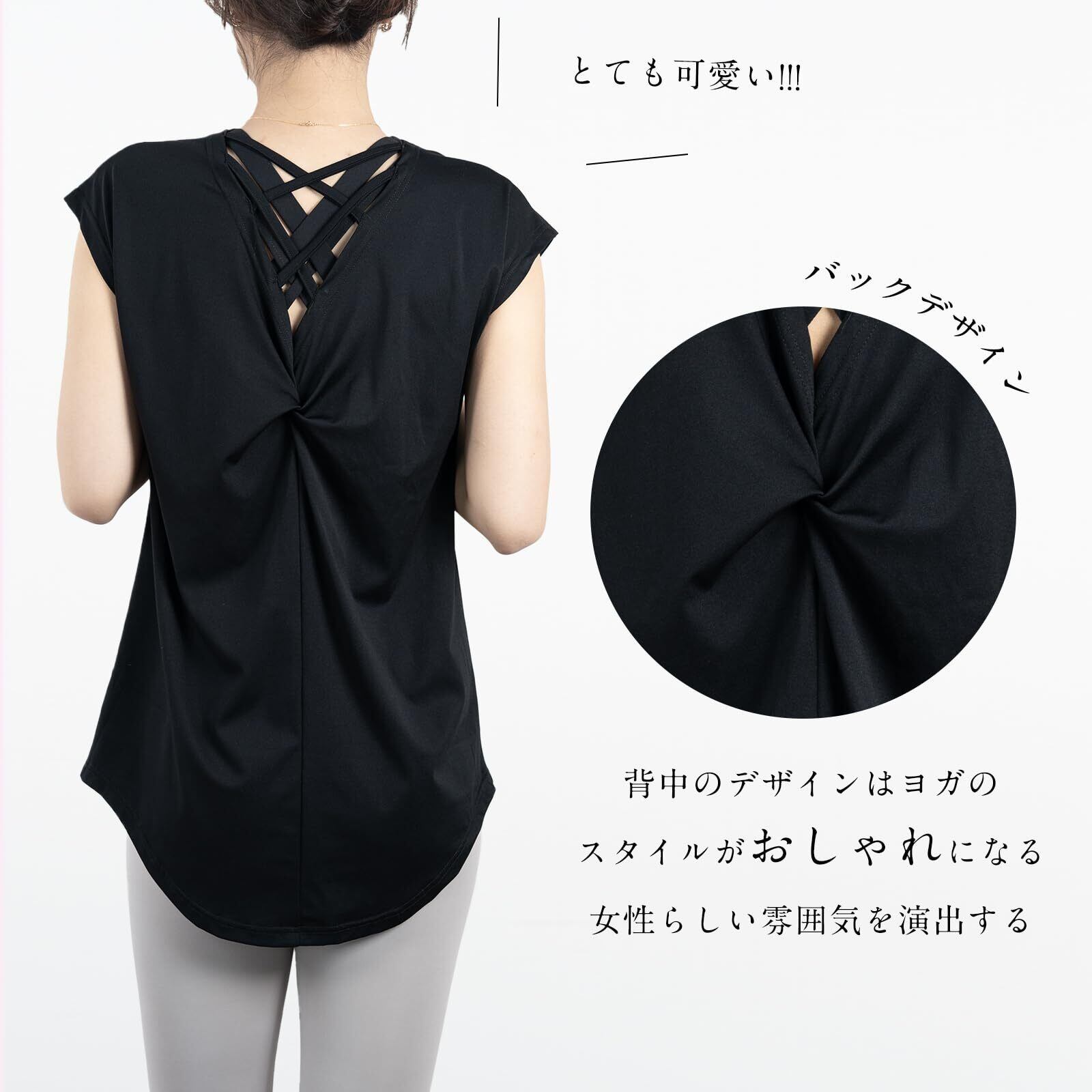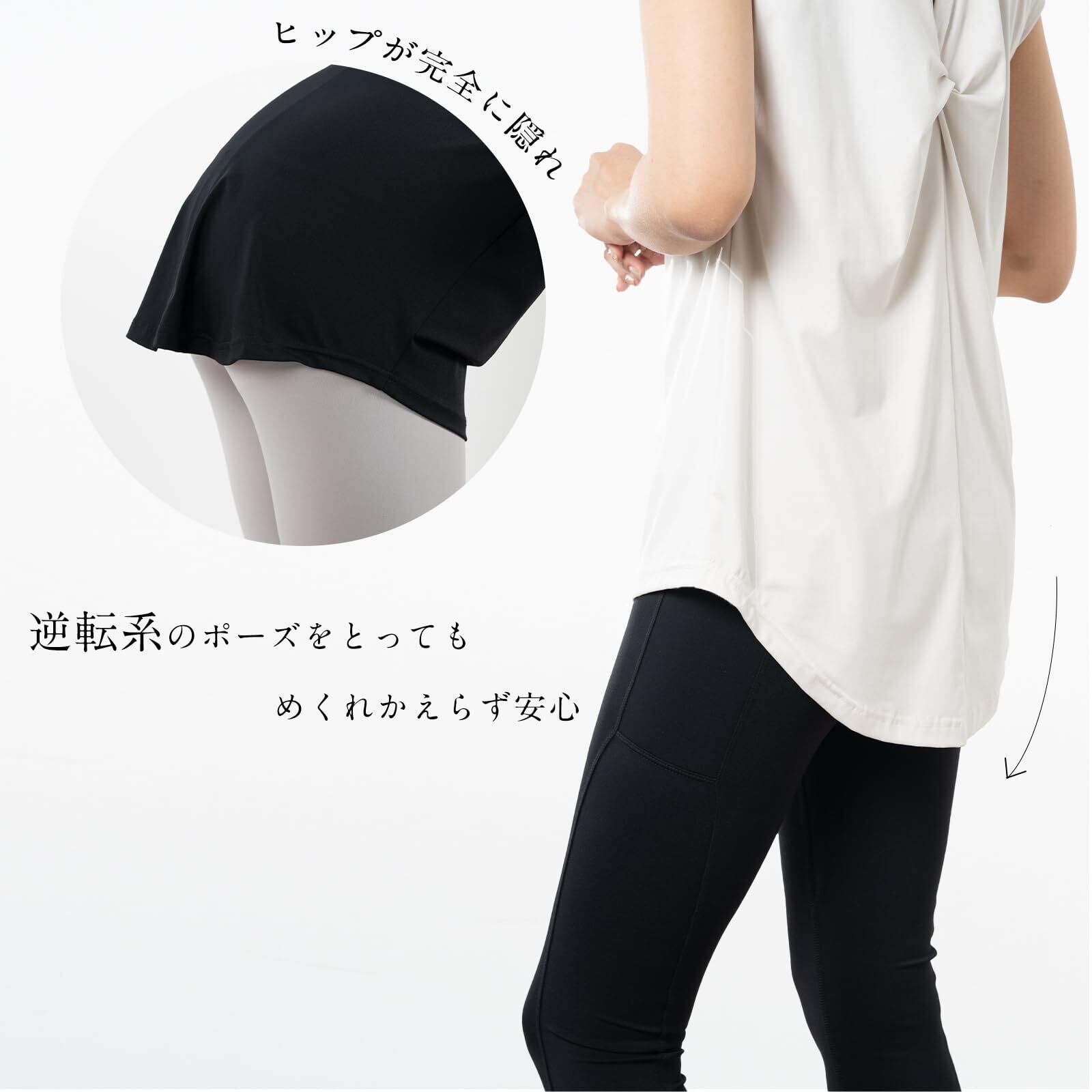 [iito.seasons] ヨガウェア レディース トップス バックデザイン 美背中 ロング丈 丈長 体型カバー Tシャツ クルーネック 半袖 ゆったり 体型カバー 冷感シャツ 無地 女性らしい スポーツ フィットネス トレーニング ルームウェア おしゃれ