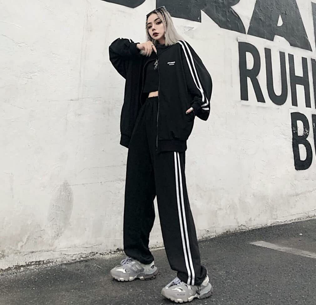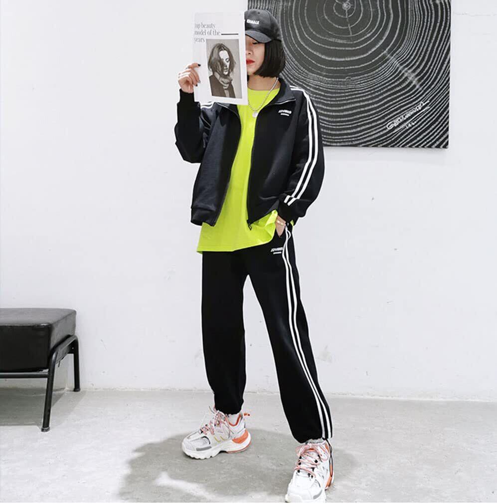 【新春セール】[D.IIZOO] 韓国風 ジャージ 上下セット レディース スウェット 2点セットアップ パーカー アクティブウェア カジュアル スポーツ 部屋着 ゆったり 大きいサイズ 春秋 C2231A | 無意味ステッカー