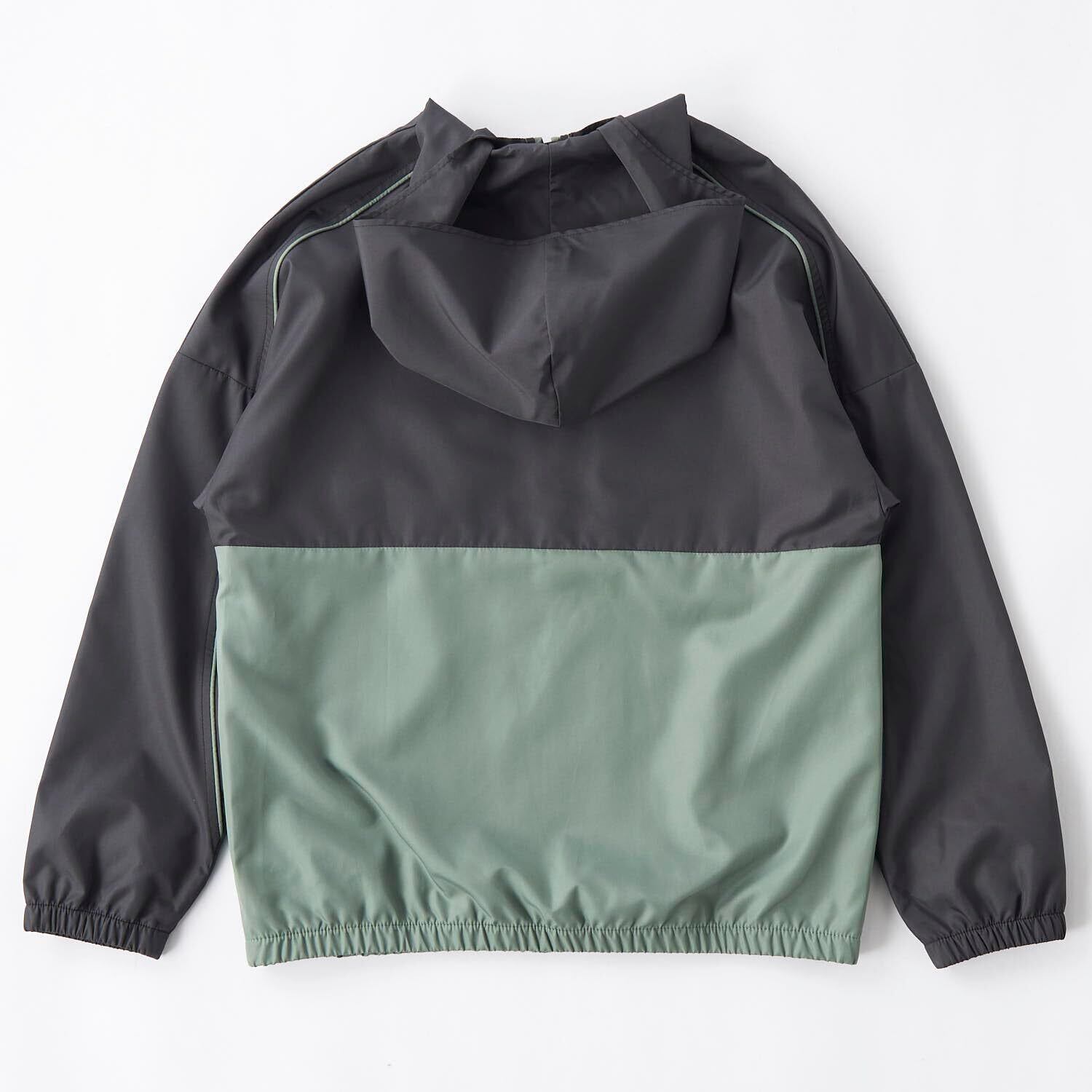 ブラックとくすみカラーの配色がポイントのウィンドブレーカー。