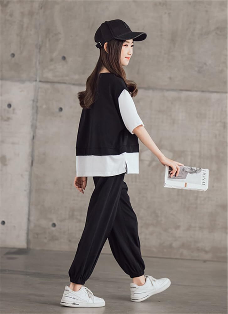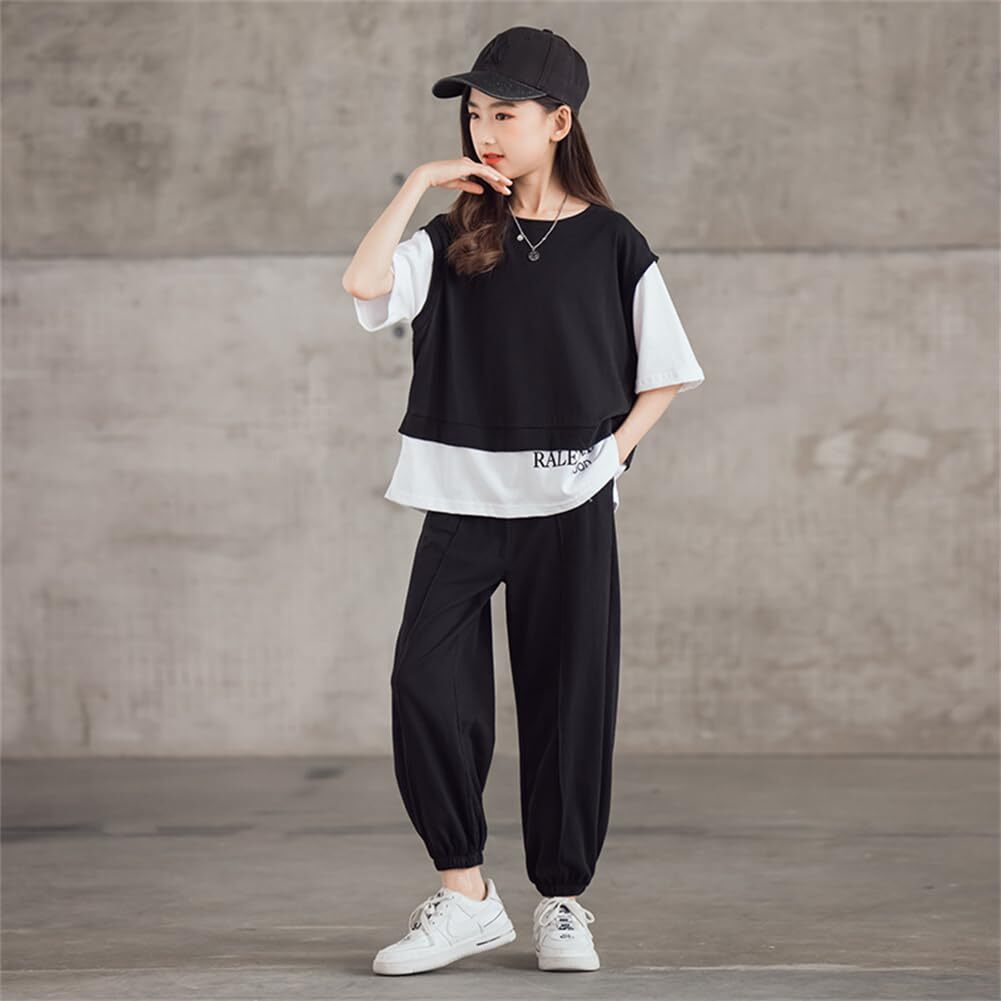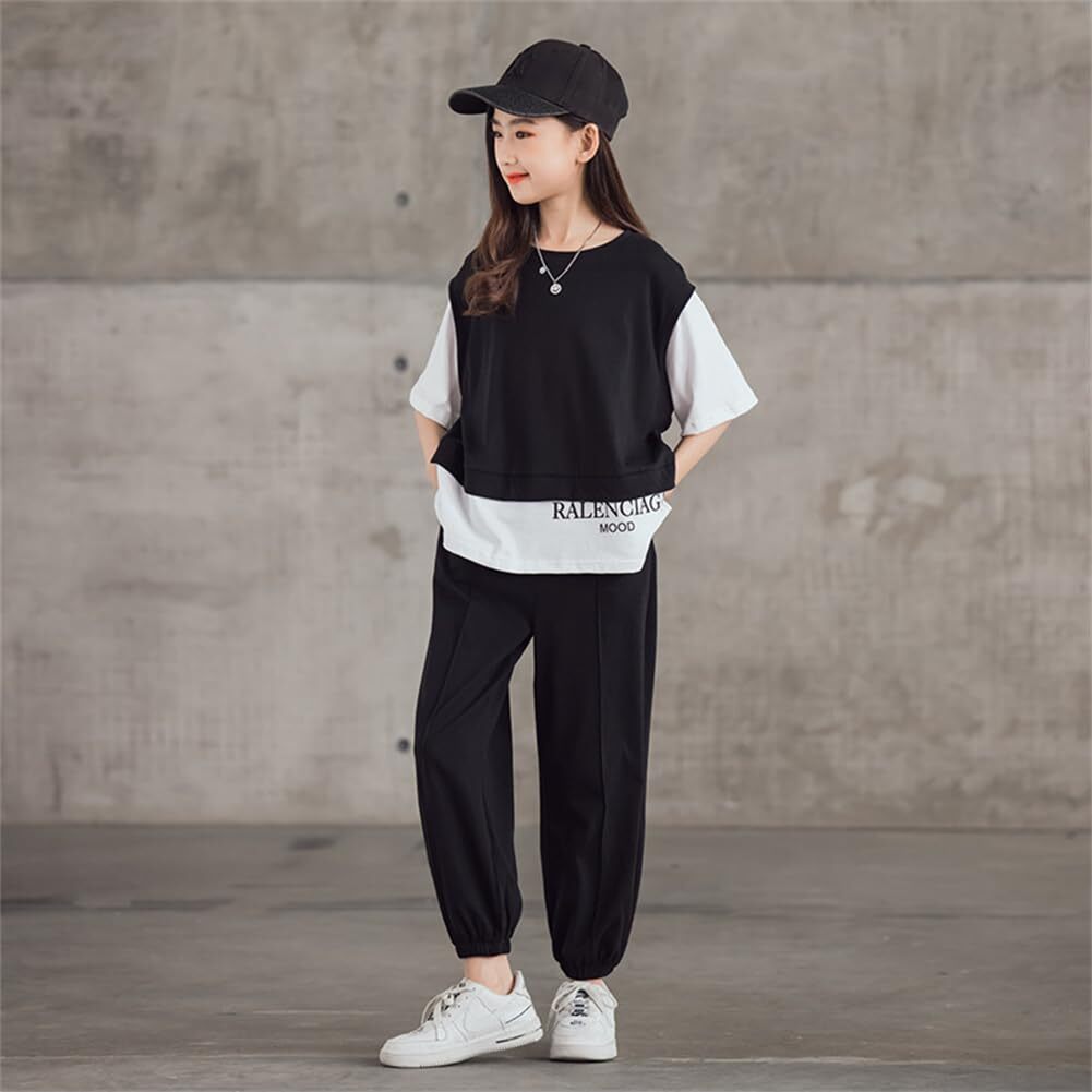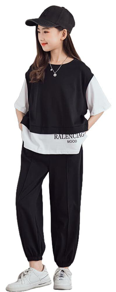 【新着商品】[KOSIKINI] 子供服 女の子 セットアップ 夏服 半袖 Tシャツ スポーツパンツ 上下セット 子供 ジャージ 女の子 カジュアル 韓国 お洒落 女の子 半袖 スウェット ウェットシャツ スウェットパンツ セットアップ キッズ 出産祝い 120-170 | 無意味ステッカー