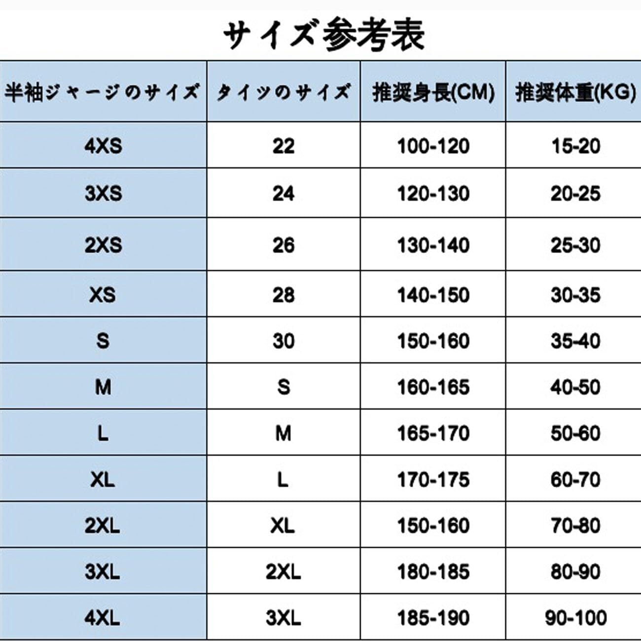 【サイズ】【4XSサイズ】推奨身長100-120cm;推奨体重15-20kg;【3XSサイズ】推奨身長120-130cm;推奨体重20-25kg;【2XSサイズ】推奨身長130-140cm;推奨体重25-30kg;【XSサイズ】推奨身長140-150cm;推奨体重30-35kg;【Sサイズ】推奨身長150-160cm;推奨体重35-40kg;【Mサイズ】推奨身長160-165cm;推奨体重40-50kg;【Lサイズ】推奨身長165-170cm;推奨体重50-60kg;【XLサイズ】推奨身長170-175cm;推奨体重60-70kg。
