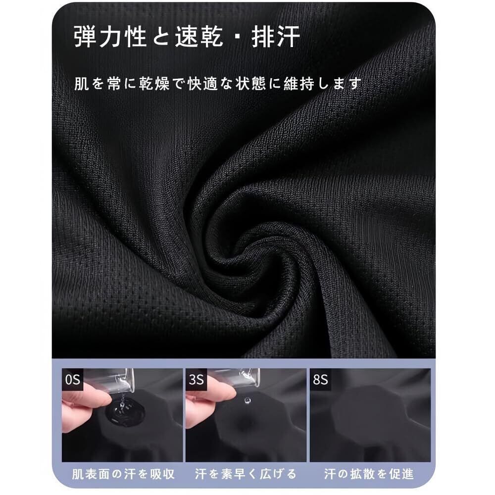 【卓越した吸汗通気性と速乾性能】汗を素早く吸収するだけでなく、通気性も抜群です.洗濯後も短時間で乾燥し、着替えが便利です.メッシュ加工された通気性素材を採用しており、特殊な処理を施すことで、強力な吸汗機能を備えています.また、抗菌防臭機能も兼ね備えており、汗を迅速に吸い取ると同時に、速やかに乾燥させ、身体の快適な状態を維持します.